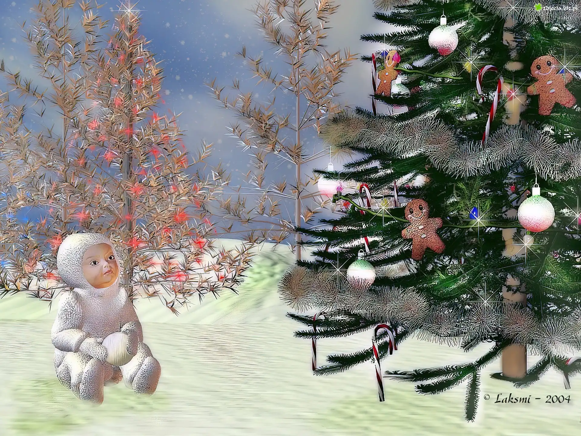 Zdjęcie Dziecko, Śnieg, Choinka, 3D