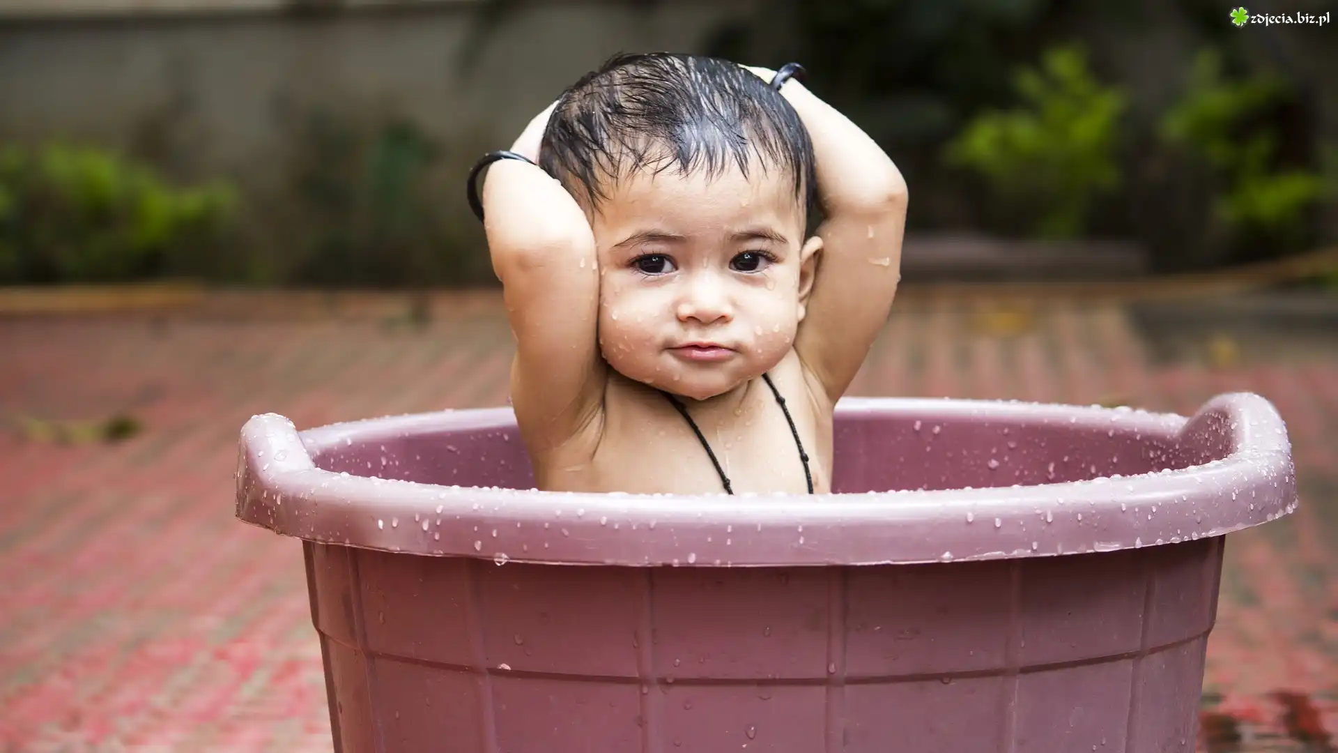 Zdjęcie Dziecko, Chłopczyk, Ciemne, Oczy, Kąpiel, Miska