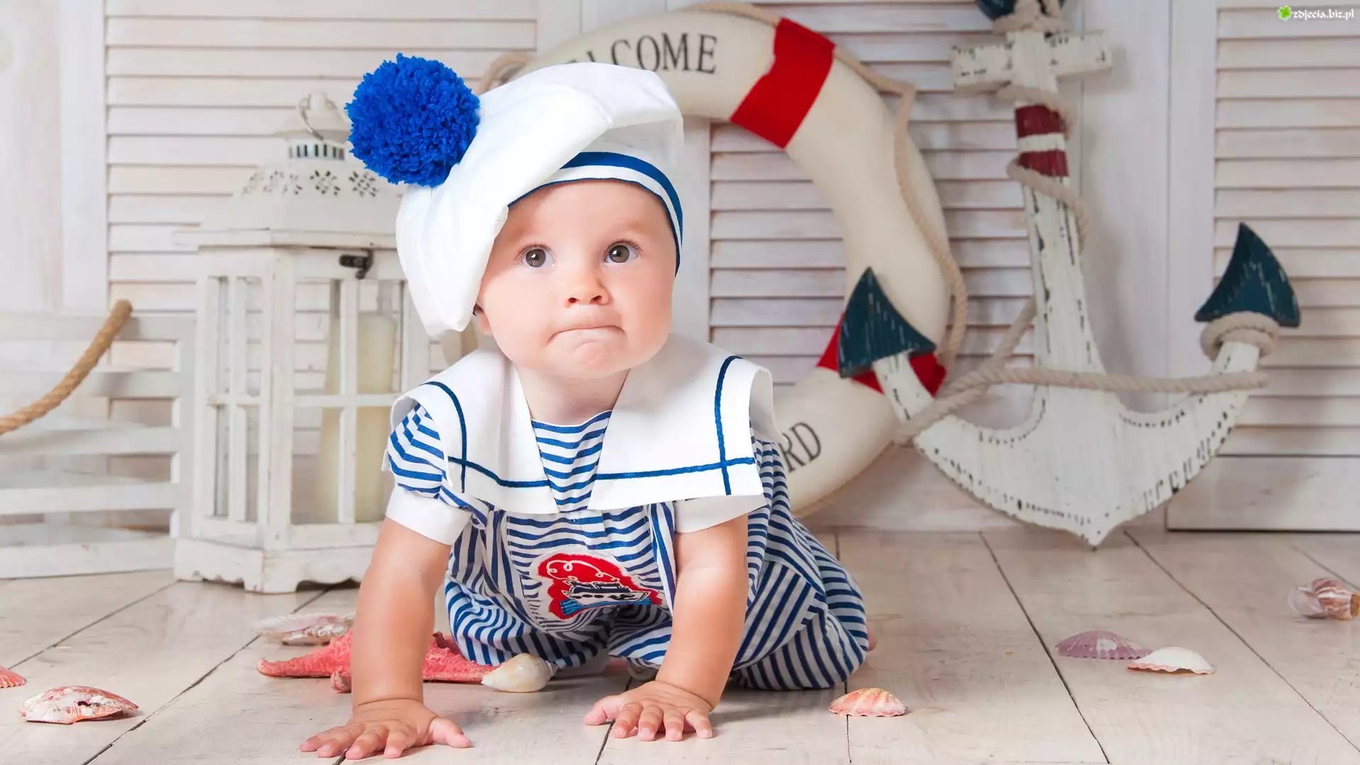 Zdjęcie Dziecko, Marynarski, Strój, Kotwica, Koło ratunkowe