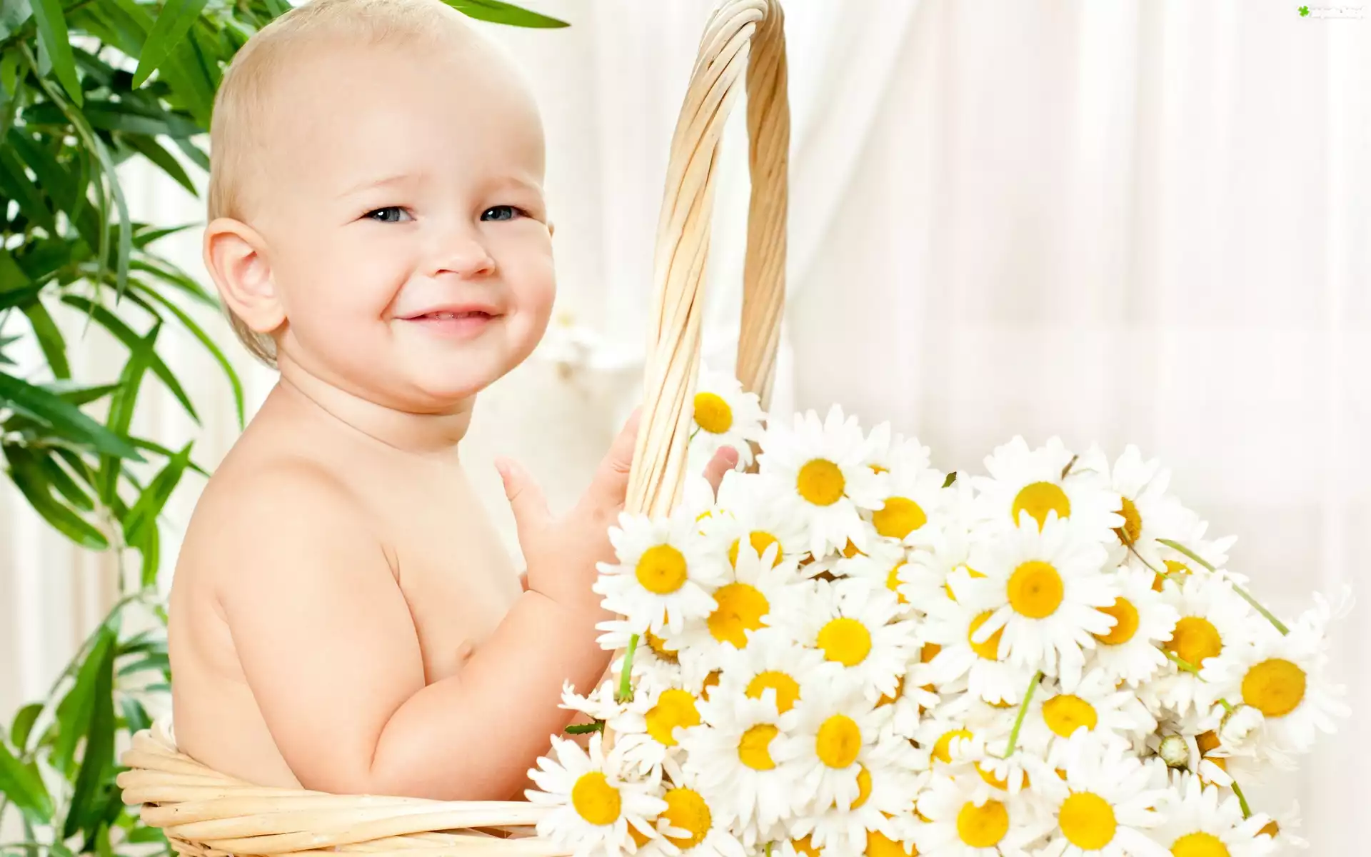 Zdjęcie Dziecko, Koszyk, Kwiaty, Rumianku