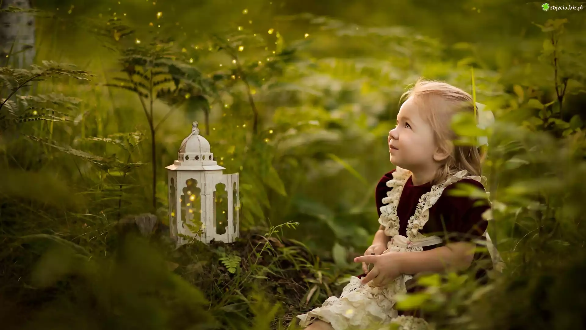 Zdjęcie Dziecko, Dziewczynka, Lampion, Zarośla