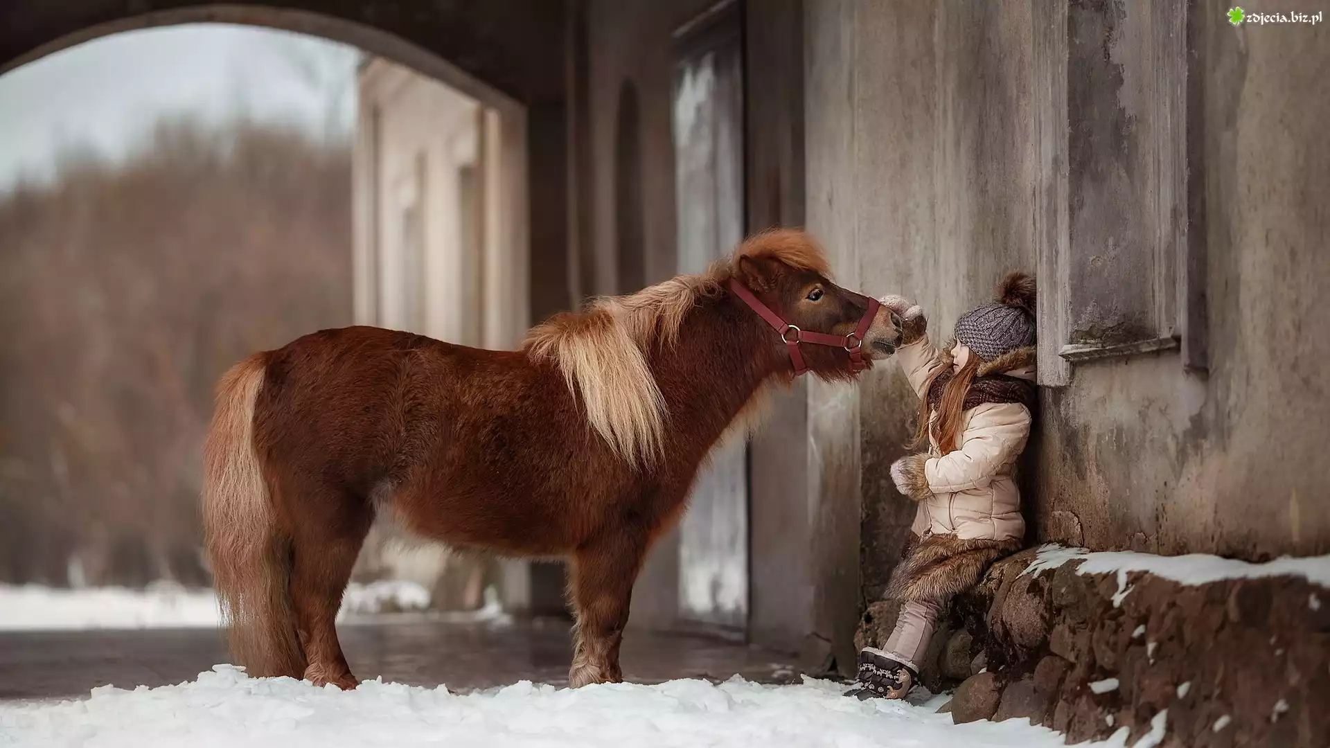 Zdjęcie Dziecko, Dziewczynka, Kuc, Śnieg, Dom