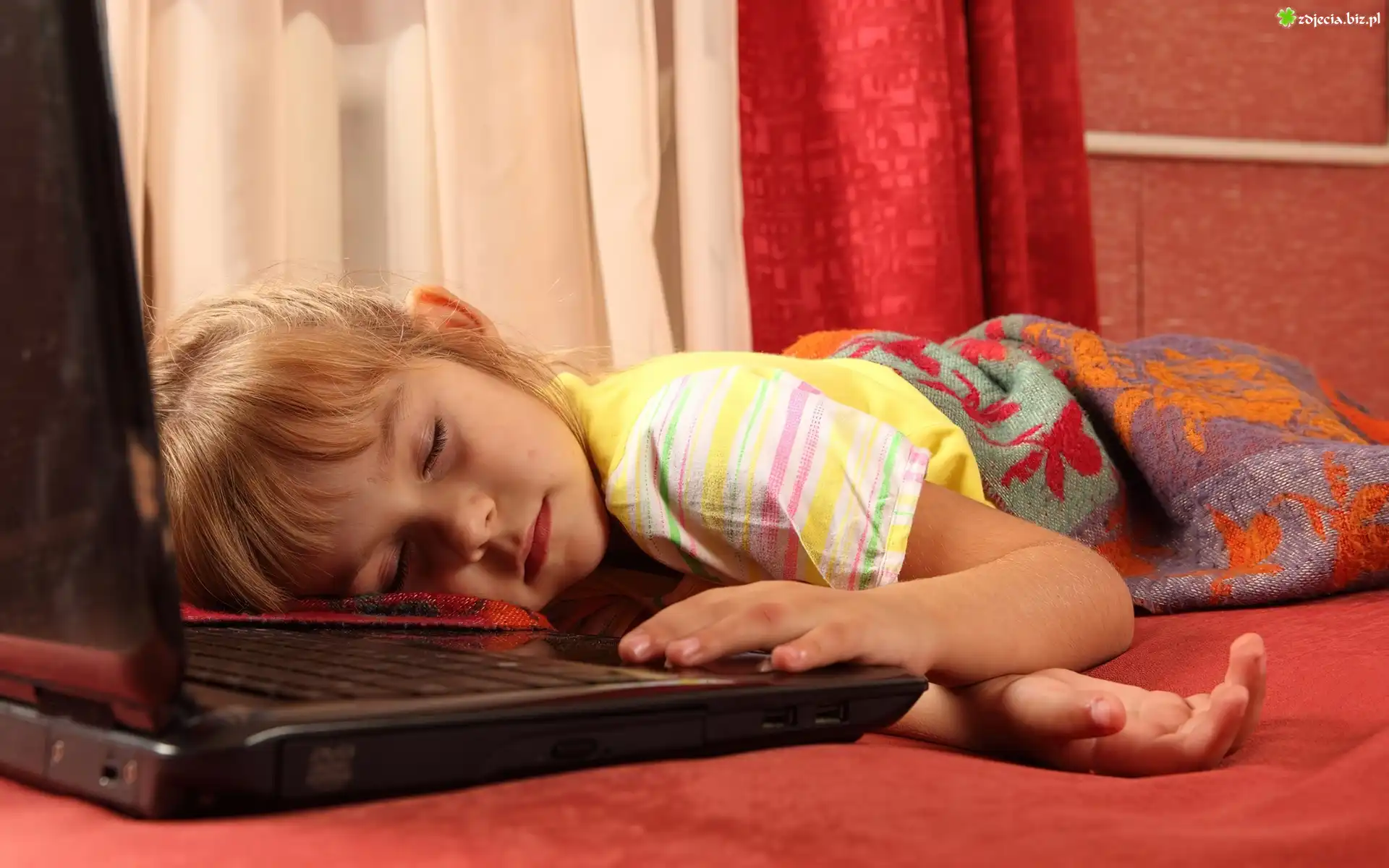 Zdjęcie Dziecko, Dziewczynka, Laptop, Odpoczynek, Sen
