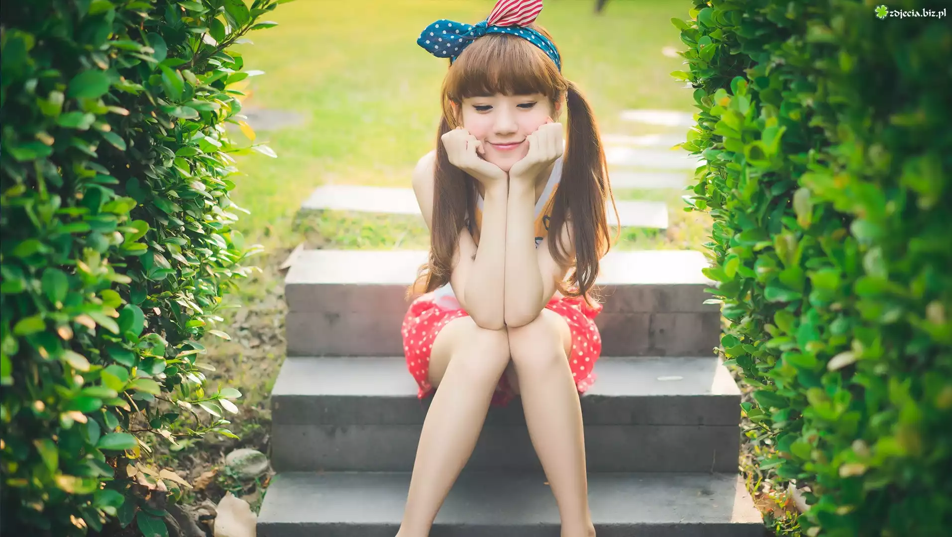Zdjęcie Dziecko, Dziewczynka, Schody, Pnące, Rośliny