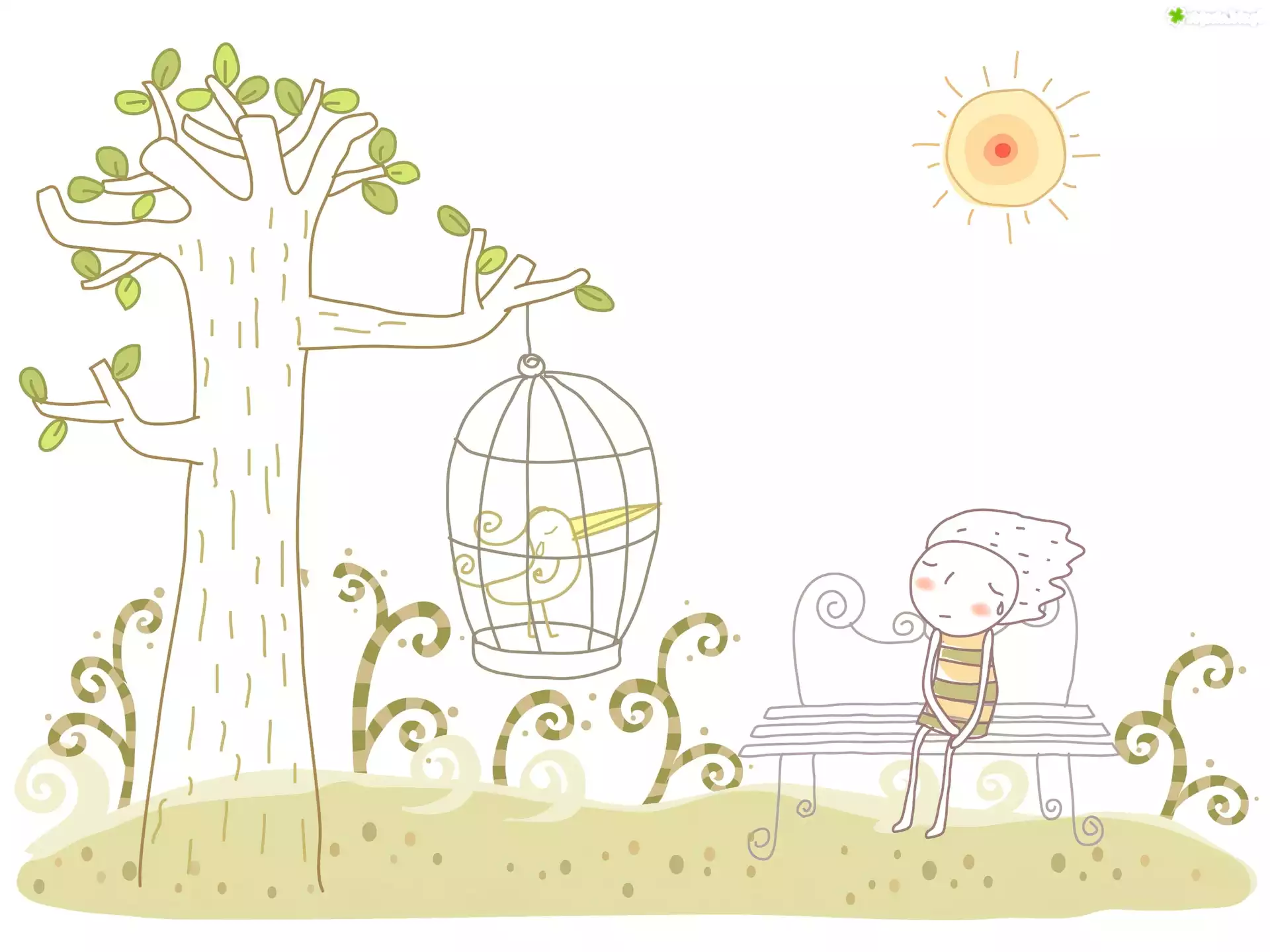 Zdjęcie Dziecko, Ławeczka, Parka, Ptaszek, Klatka