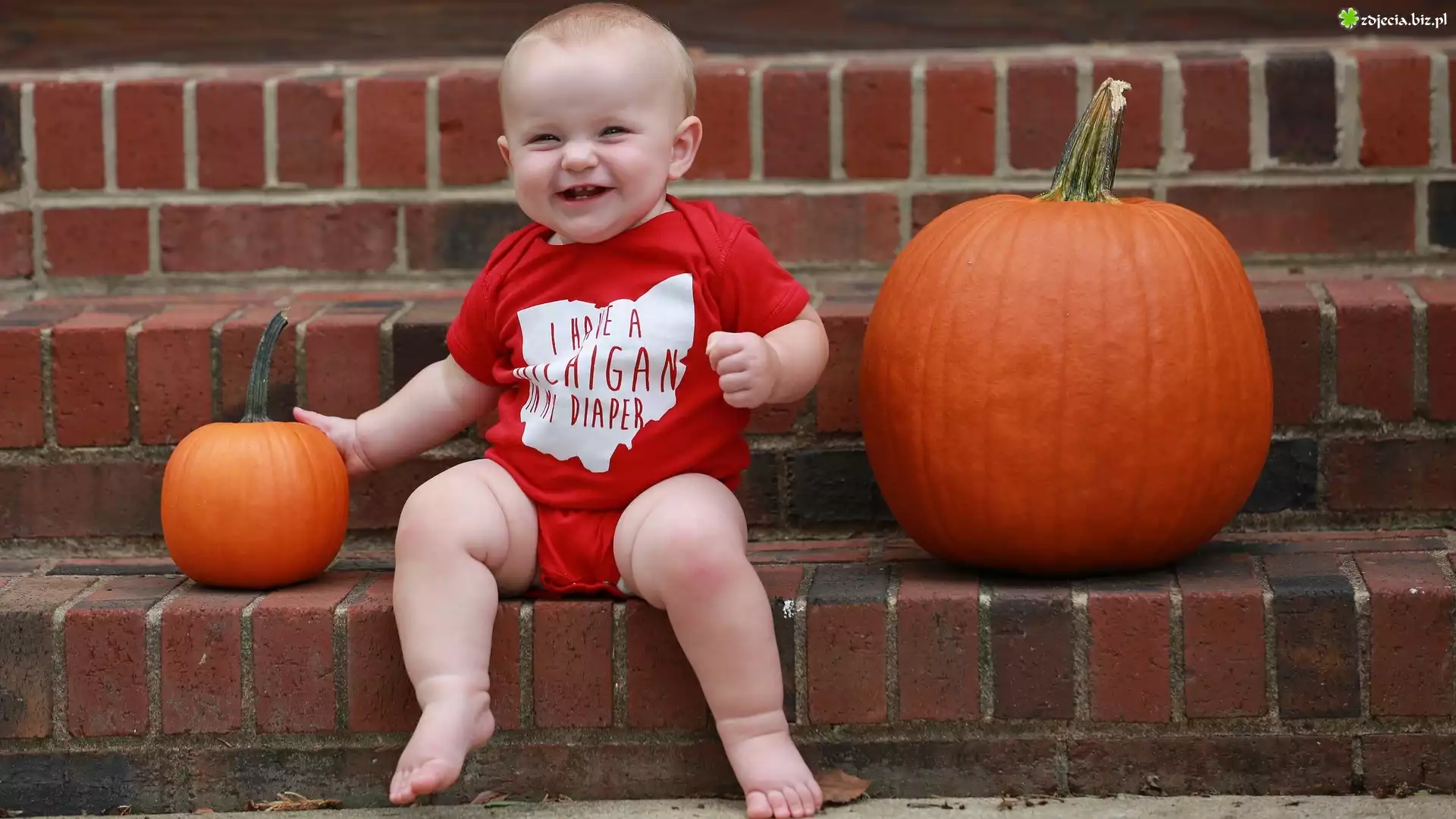 Zdjęcie Dziecko, Szczęśliwe, Uśmiechnięte, Schody, Dynie