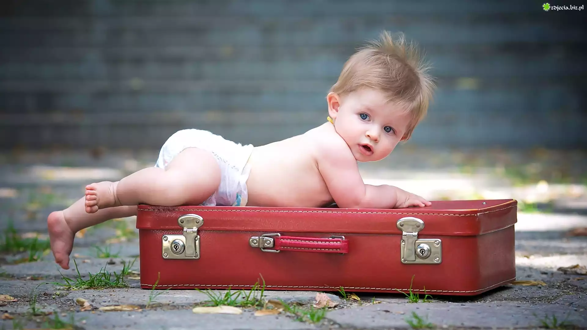 Zdjęcie Dziecko, Pampers, Walizka, Czerwona