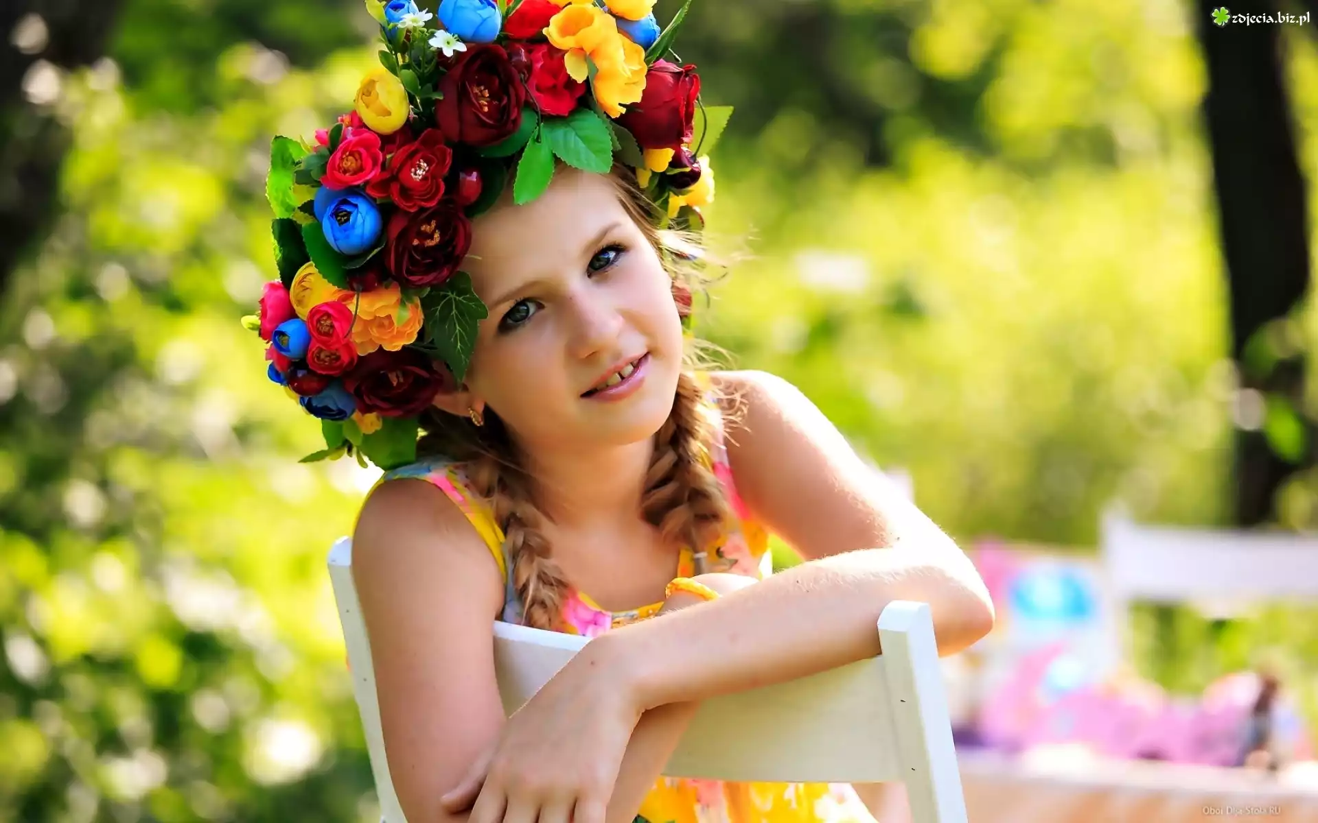 Zdjęcie Dziecko, Dziewczynka, Lato, Wianek, Kwiaty