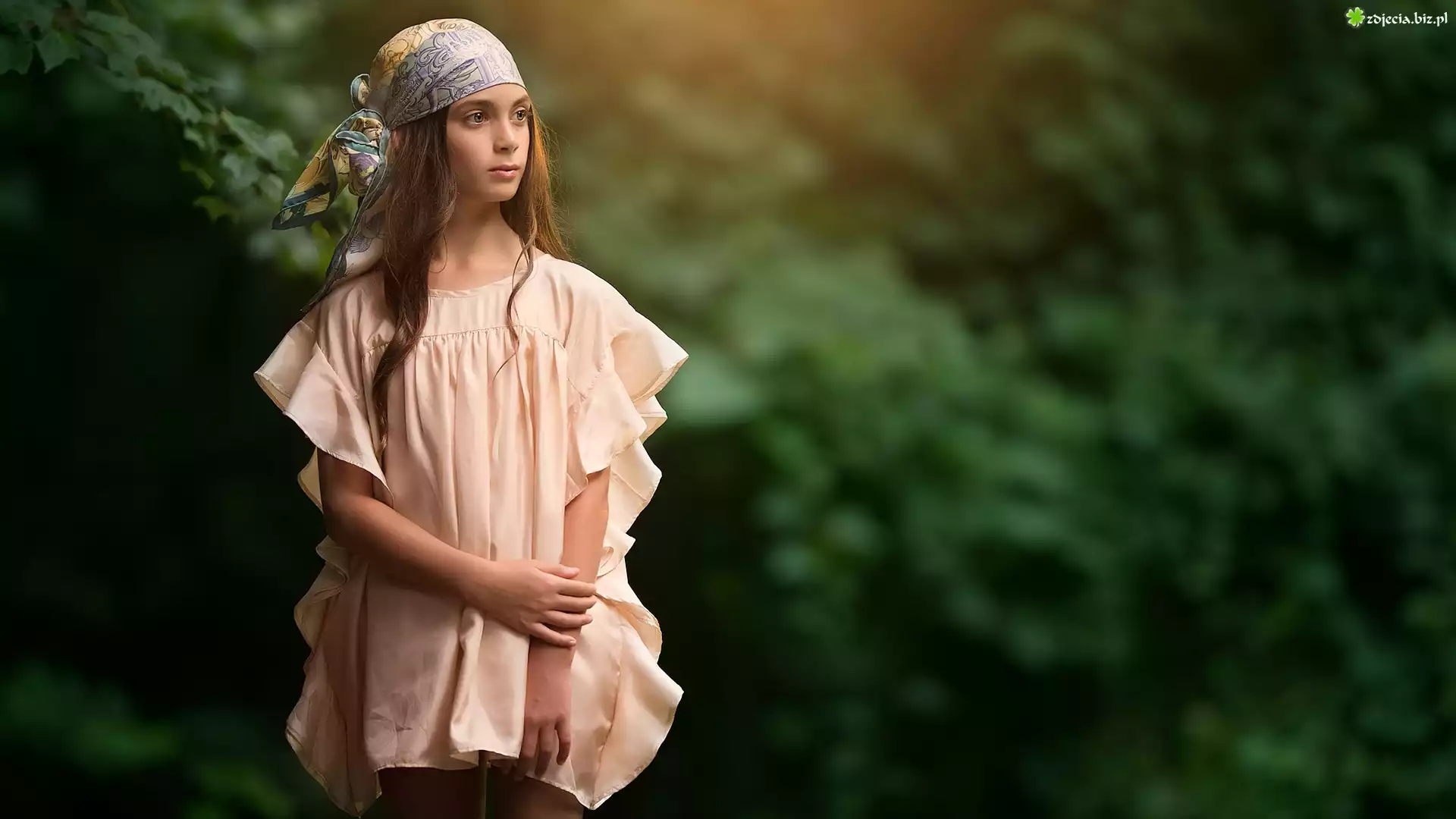 Zdjęcie Dziewczyna, Szatynka, Morelowa, Bluzka, Chustka