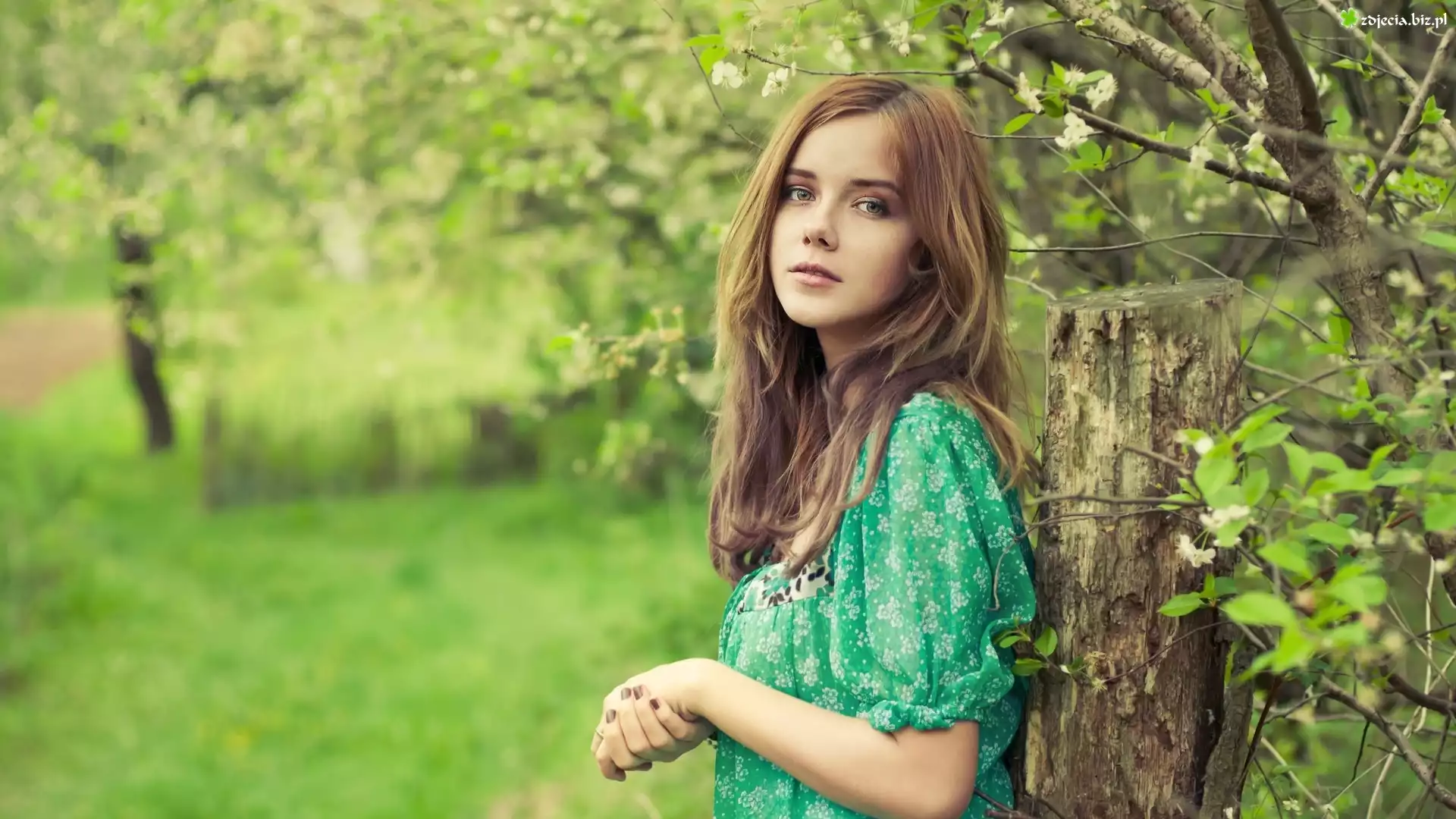 Zdjęcie Dziewczyna, Zielona, Bluzka, Drzewa