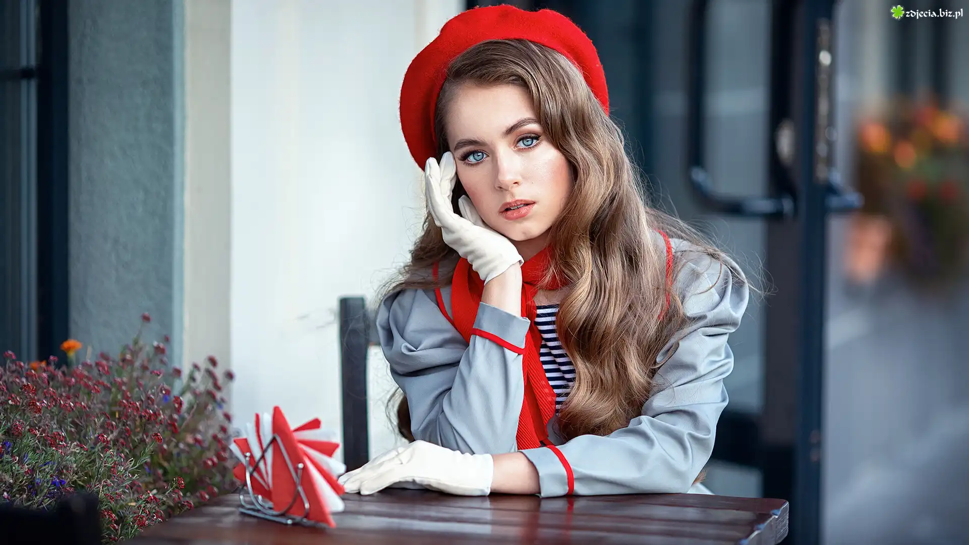 Zdjęcie Dziewczyna, Szatynka, Czerwony, Beret