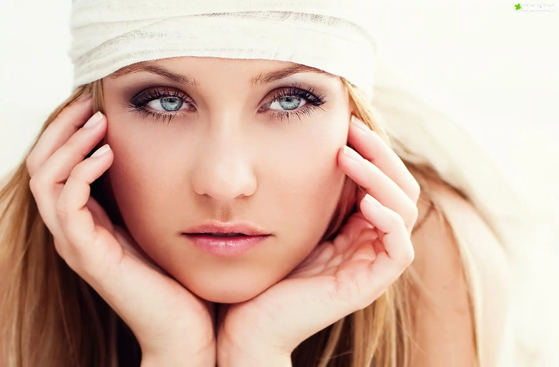 Zdjęcie Dziewczyna, Makijaż, Dłonie, Chustka