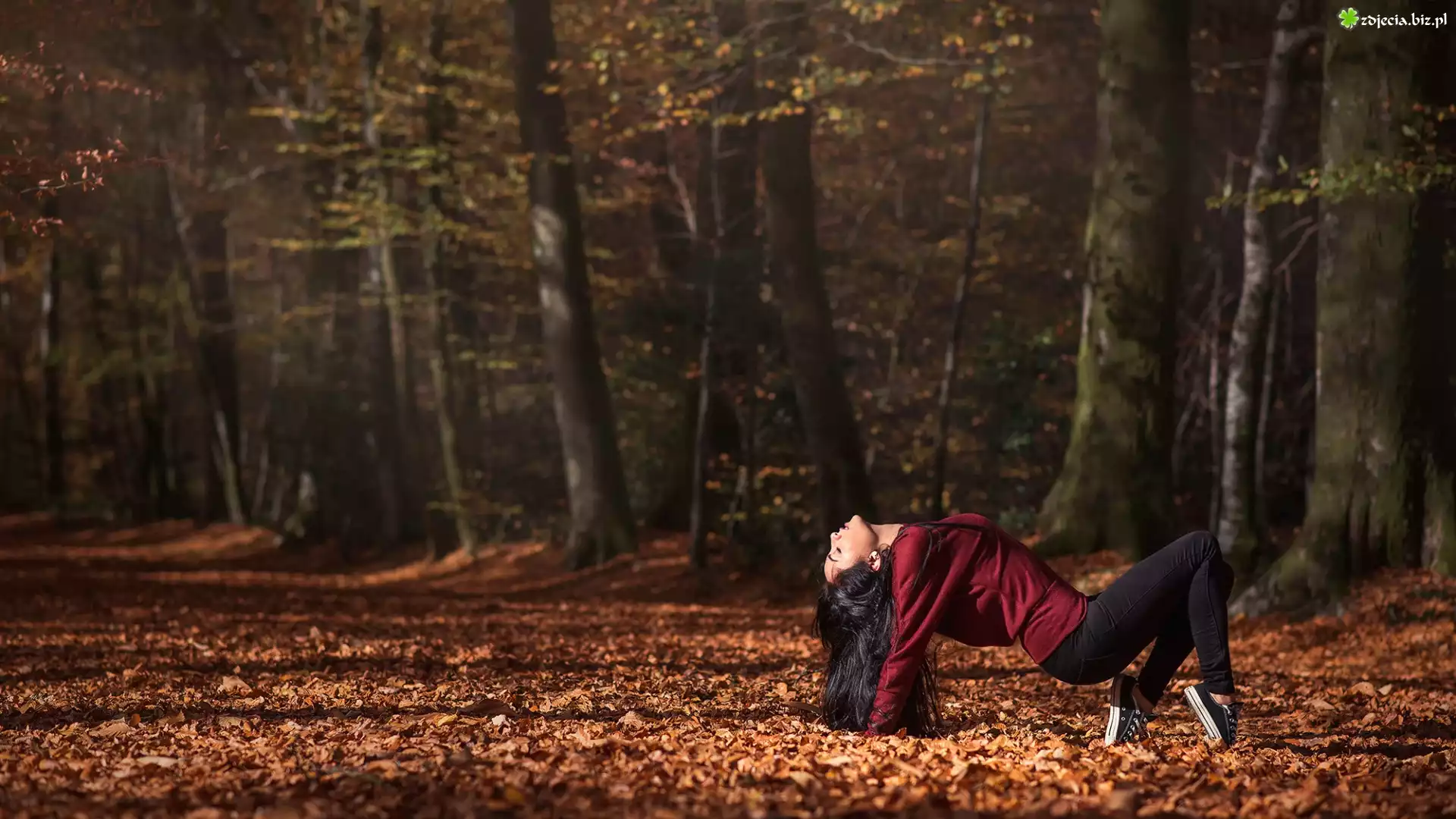 Zdjęcie Dziewczyna, Taniec, Jesień, Las, Droga, Liście