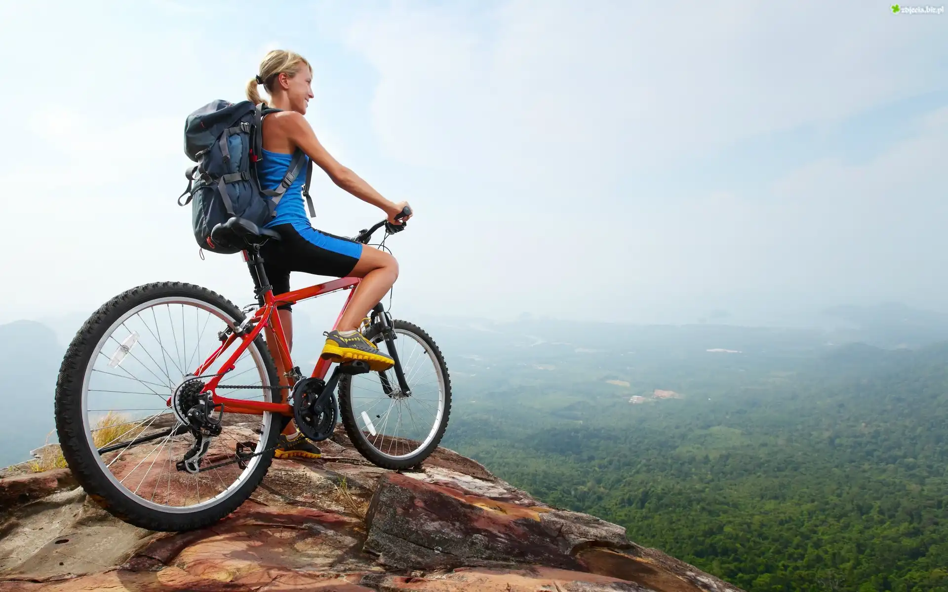 Zdjęcie Dziewczyna, Turystka, Rower, Szczyt, Góry, Horyzont