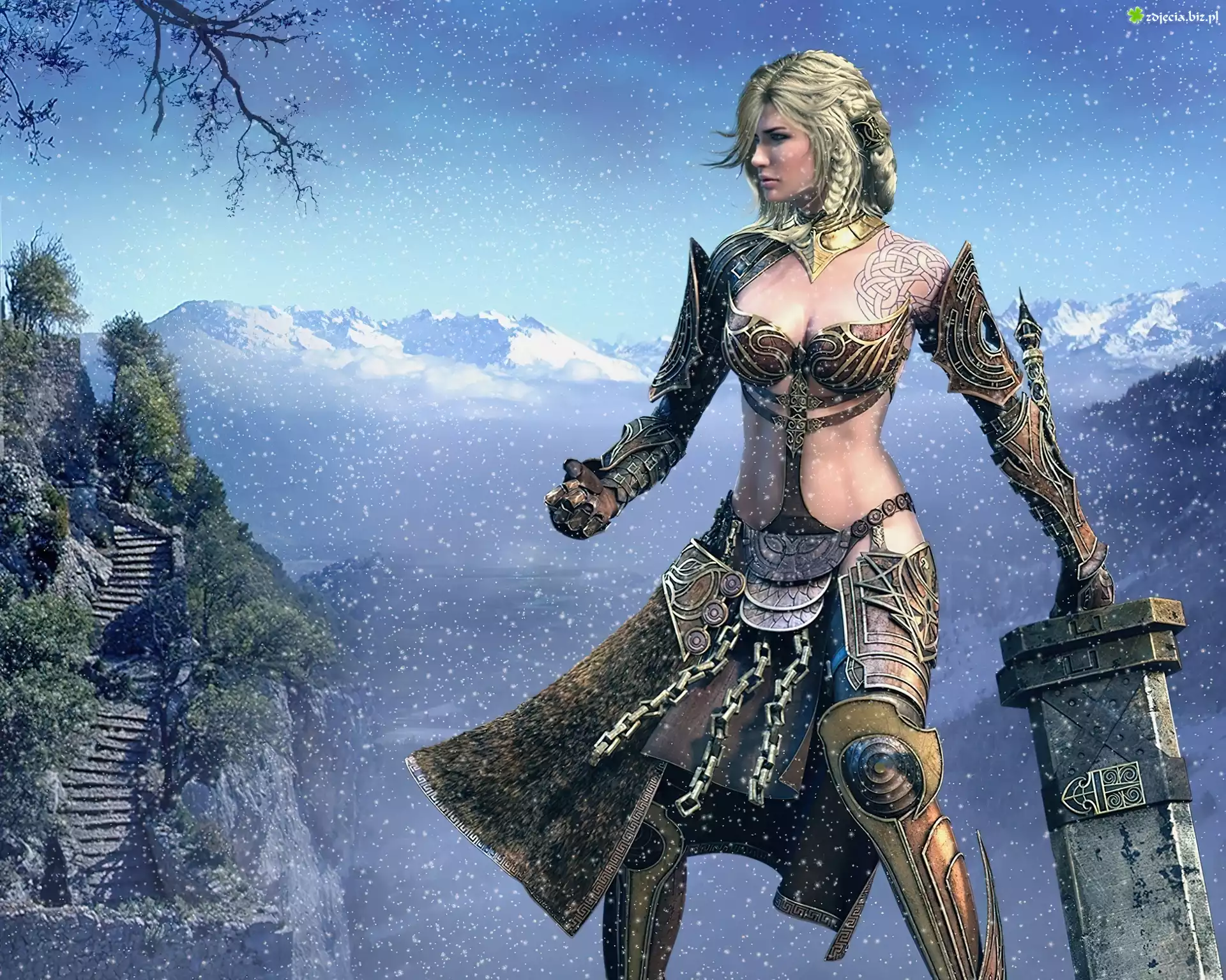 Zdjęcie Dziewczyna, Zbroja, Góry, Śnieg