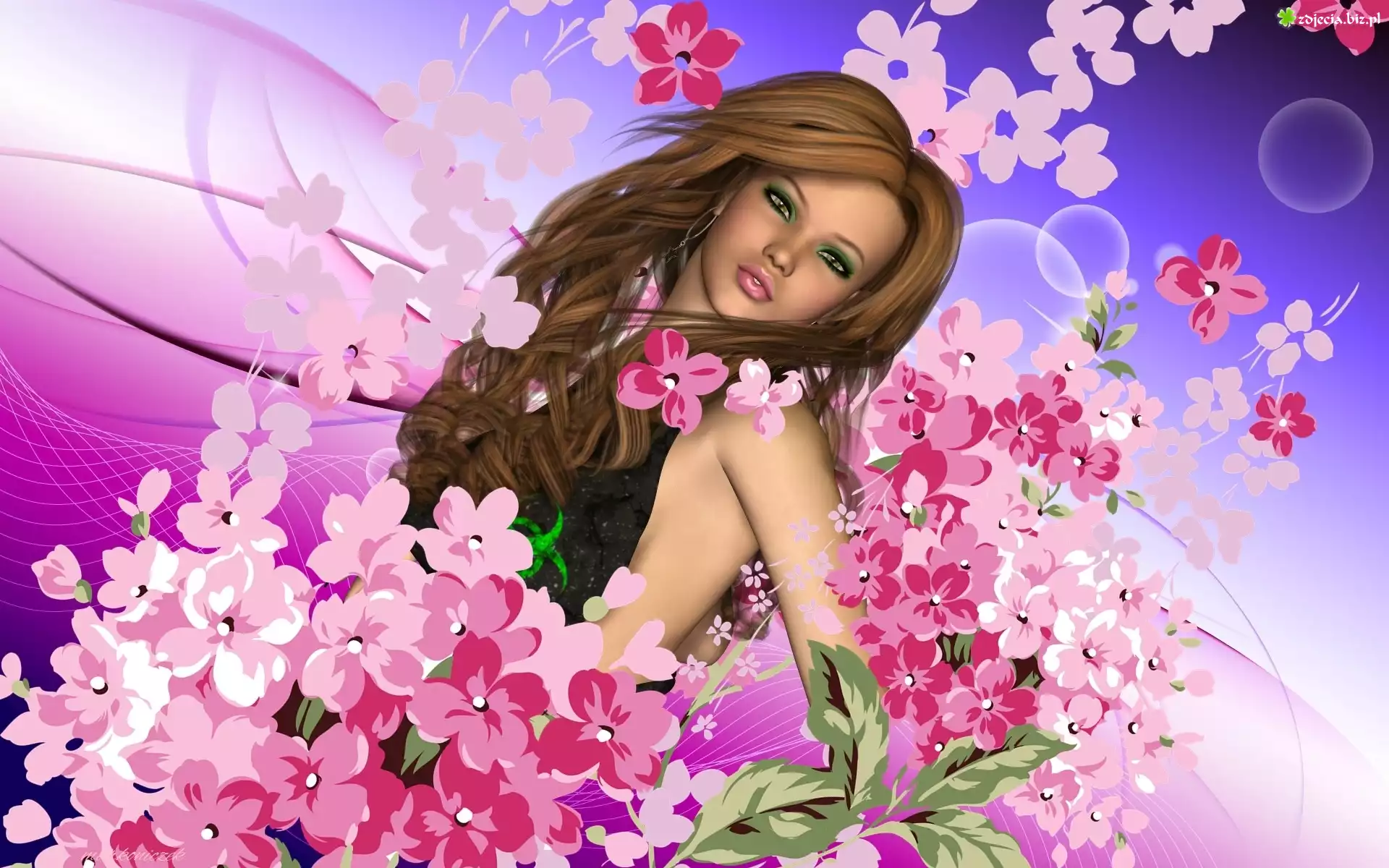 Zdjęcie Grafika, Dziewczyna, Kwiaty