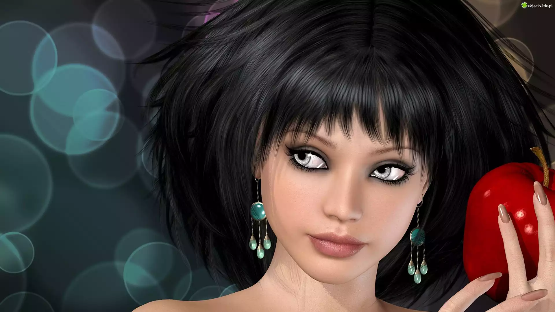Zdjęcie Dziewczyna, Jabłko, Portret, Grafika, 3D