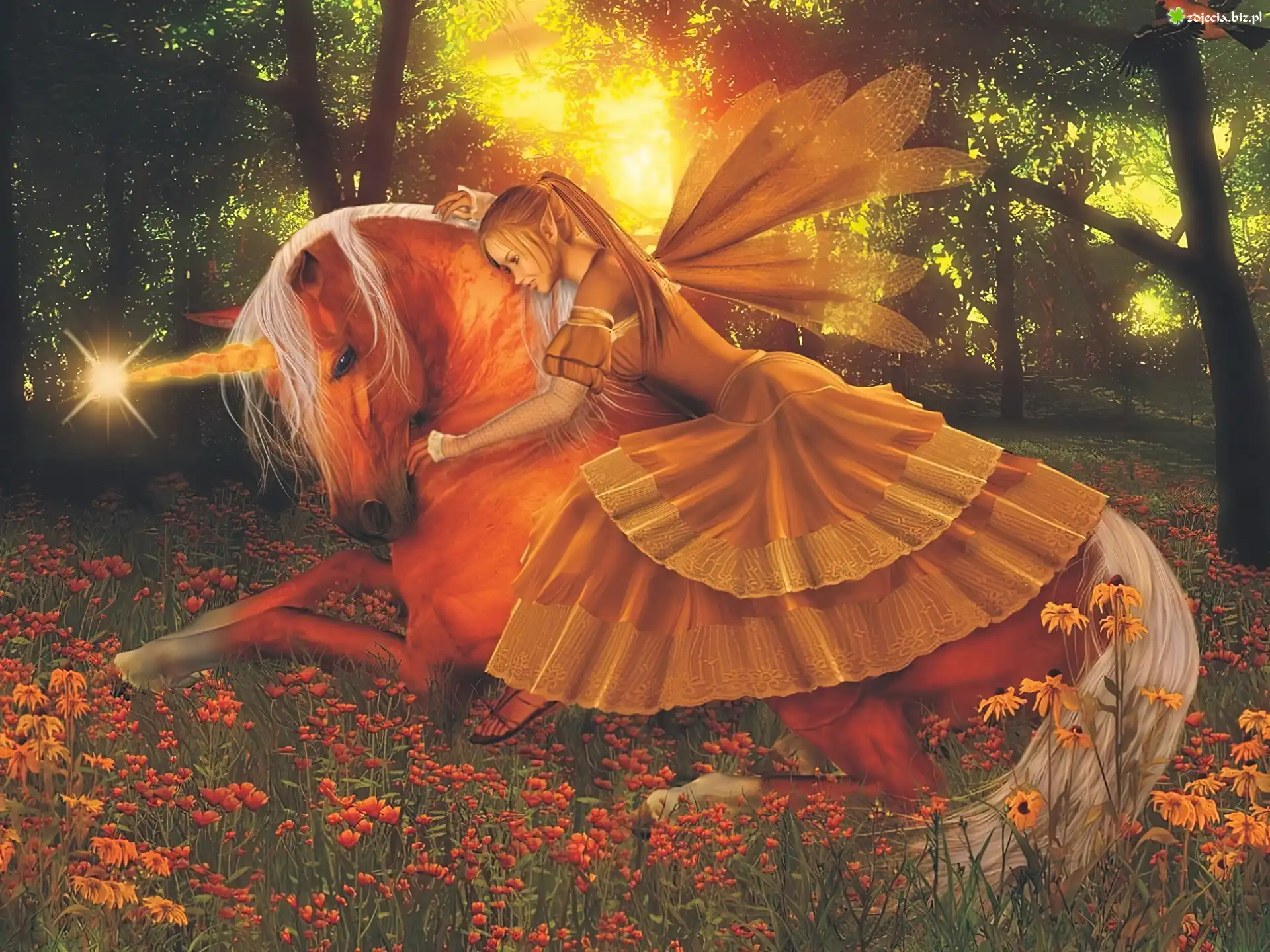 Zdjęcie Dziewczyna, Motyl, Jednorożec, Las