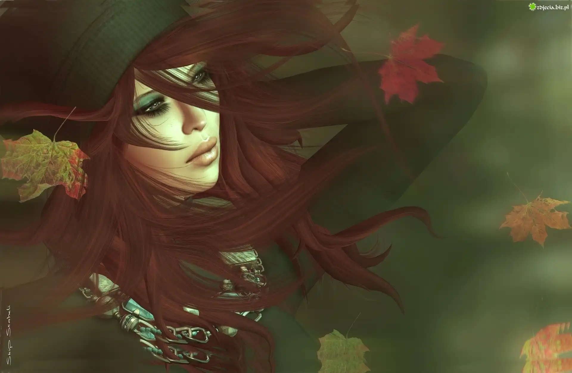Zdjęcie Dziewczyna, Brunetka, Jesienne, Liście