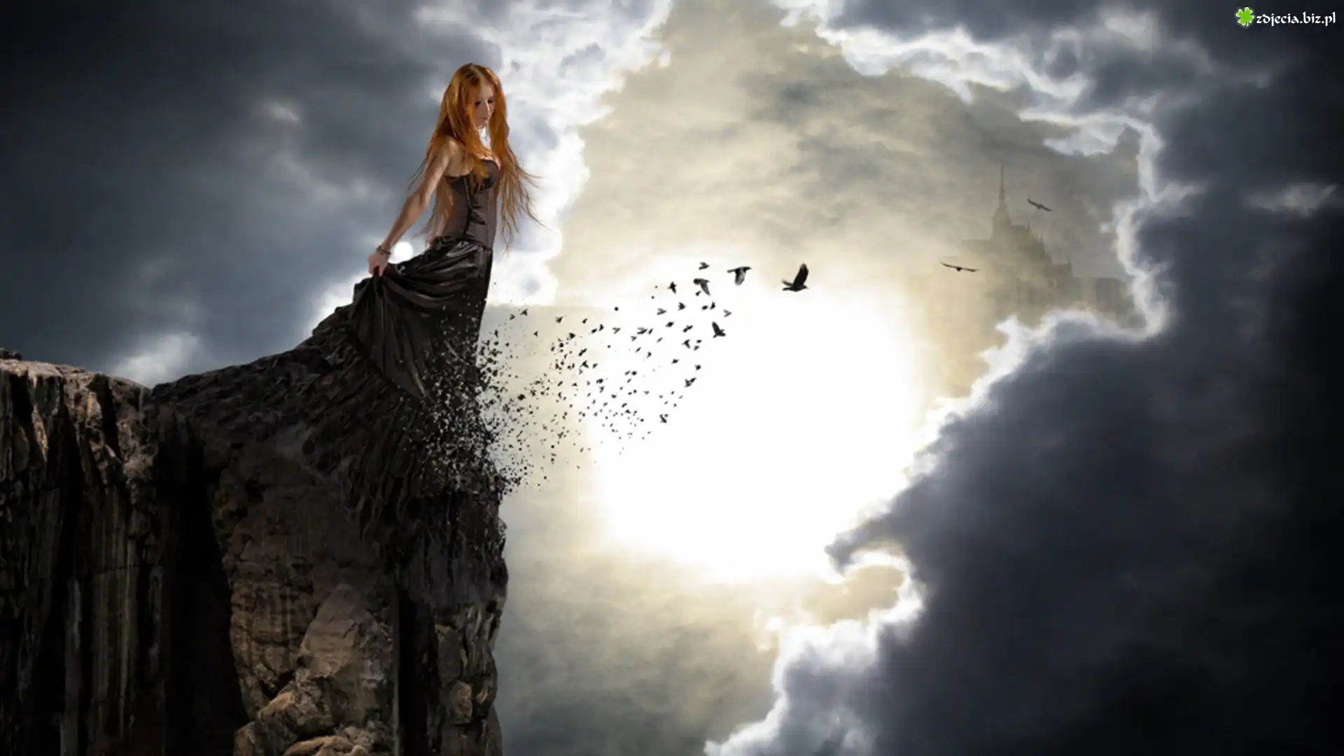 Zdjęcie Dziewczyna, Na, Krawędzi, Ptaki