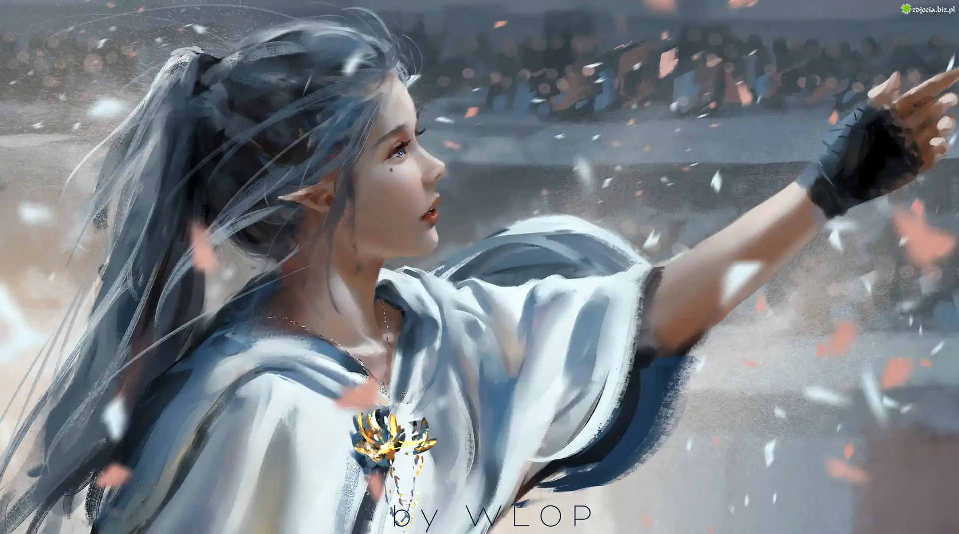 Zdjęcie Dziewczyna, Elf, Uniesiona, Ręka, Naszyjnik, Grafika