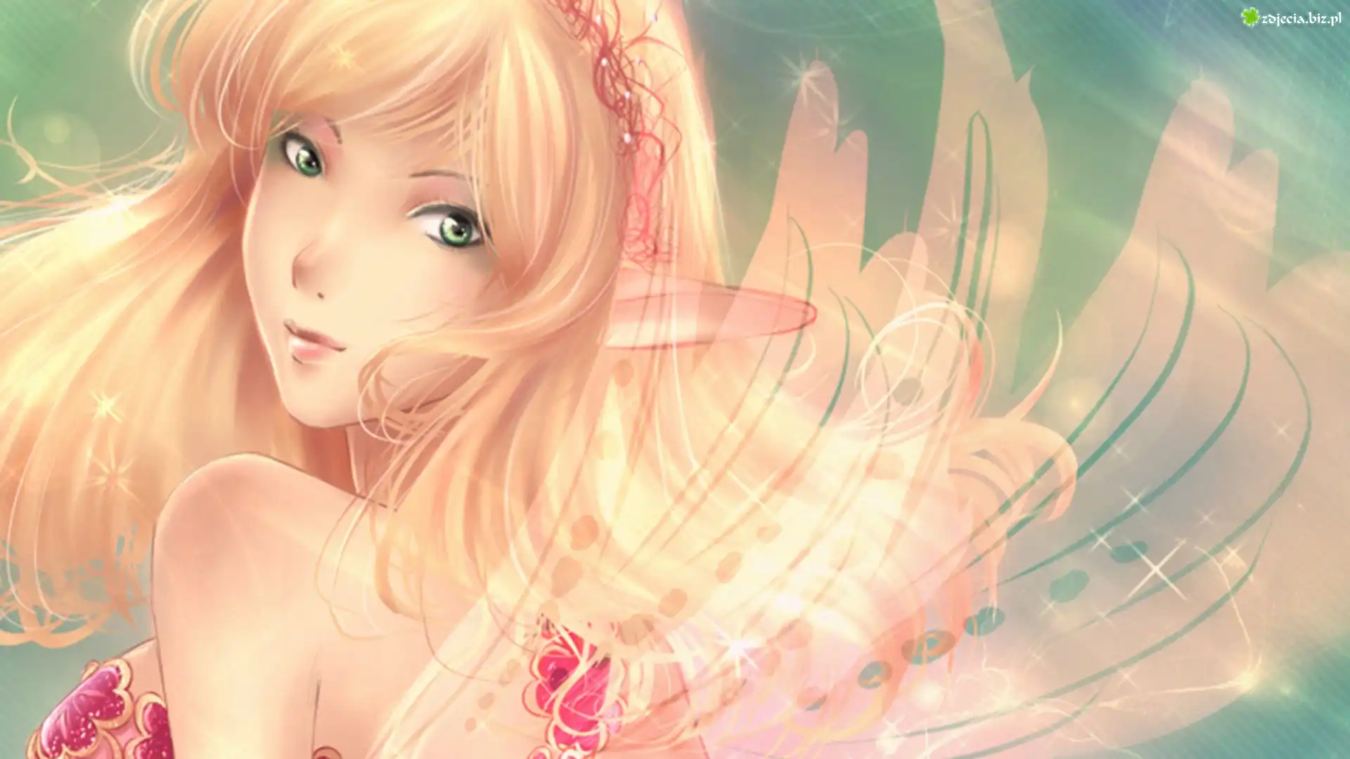 Zdjęcie Dziewczyna, Zielone, Oczy, Skrzydła