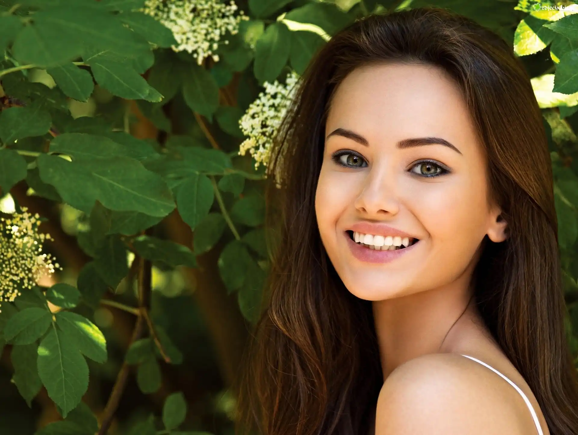 Zdjęcie Dziewczyna, Makijaż, Roślina, Liście