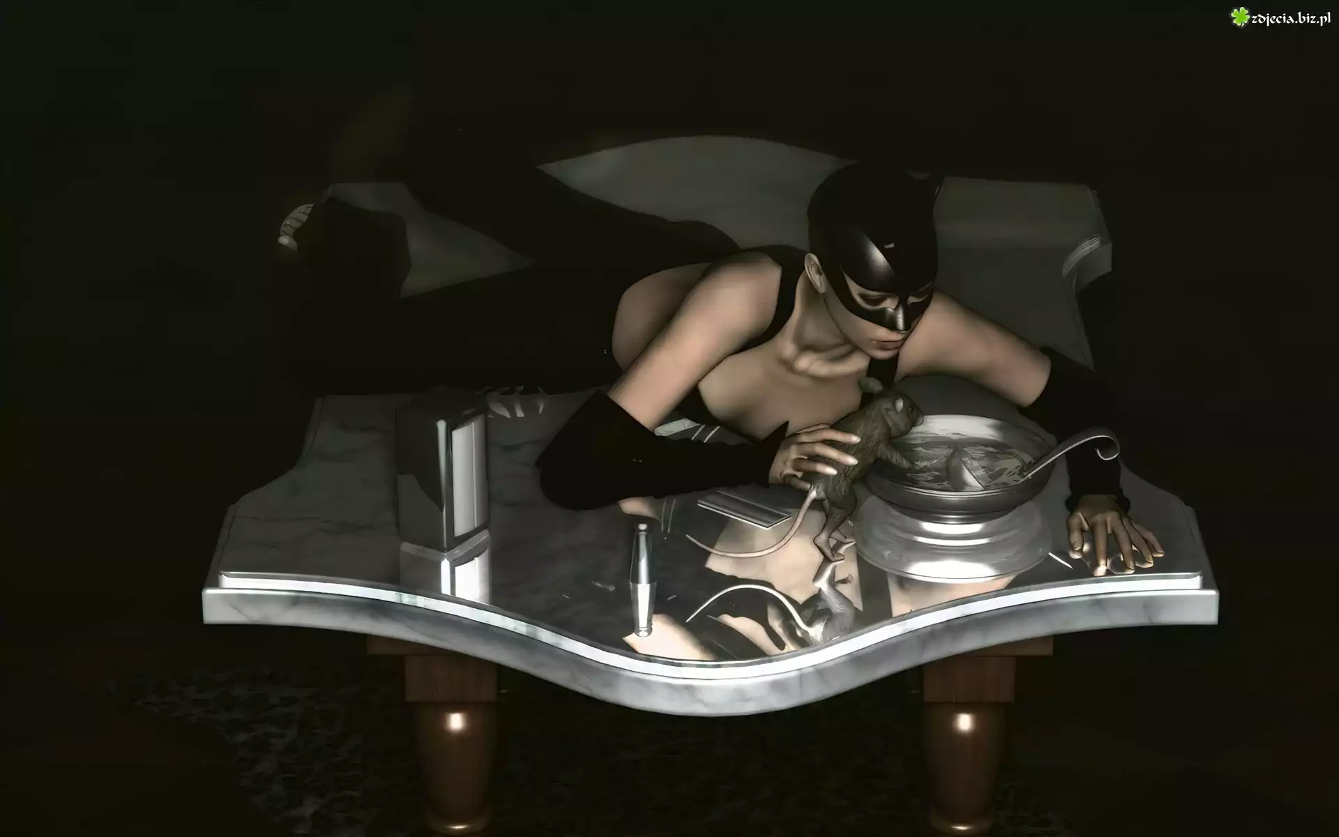 Zdjęcie Dziewczyna, Kot, Stół, Szczur