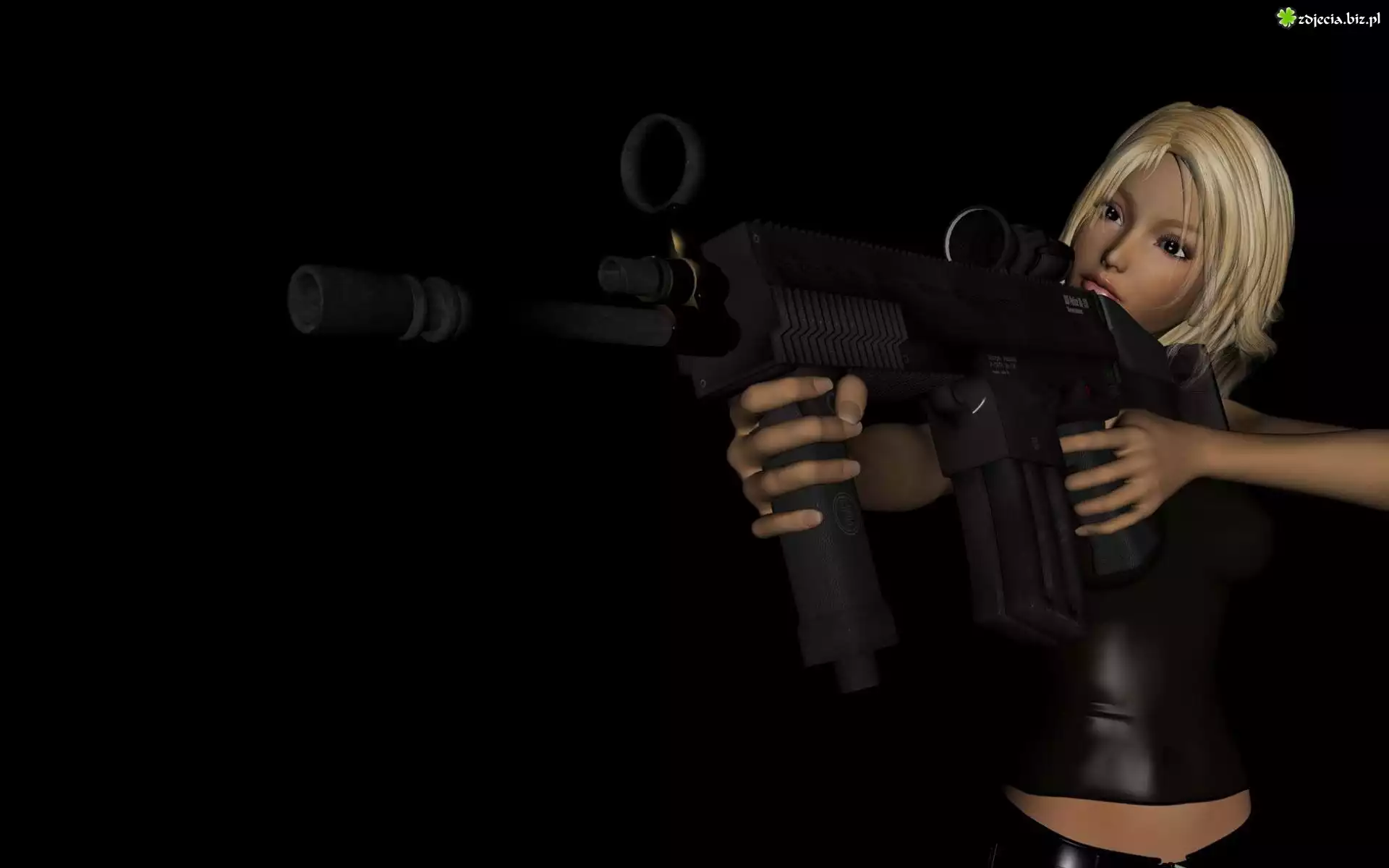 Zdjęcie Dziewczyna, Czarny, Strój, Karabin