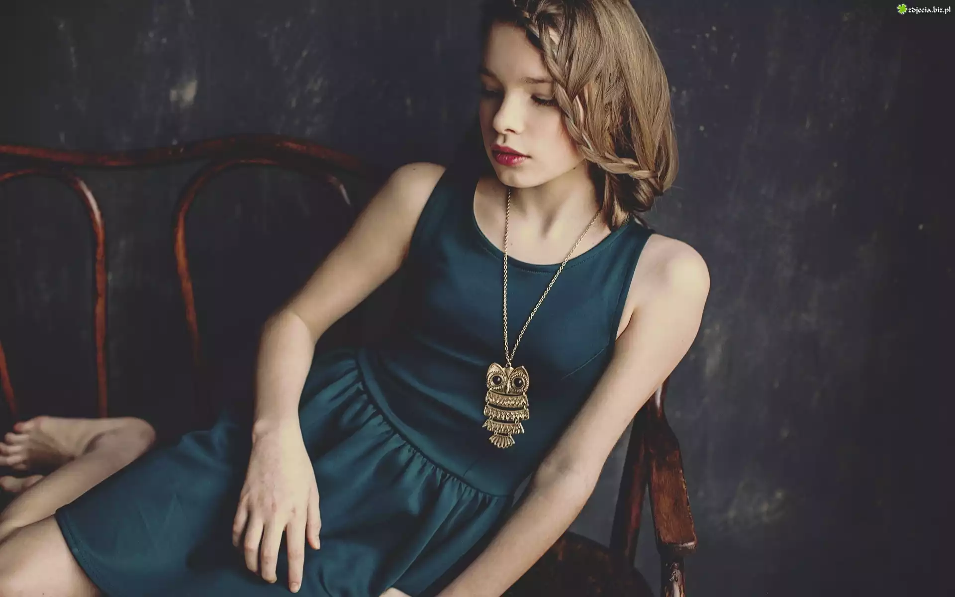 Zdjęcie Dziewczyna, Długie, Włosy, Sukienka, Naszyjnik