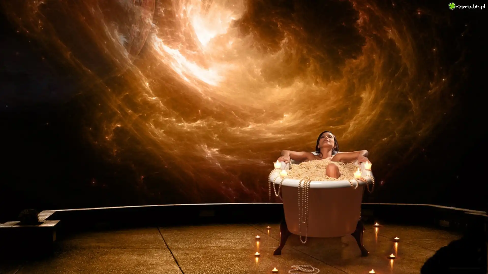 Zdjęcie Dziewczyna, Perły, Wanna, Świece