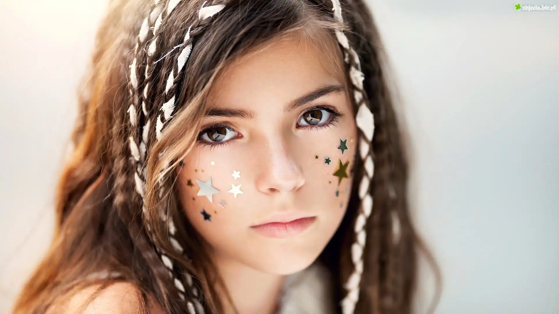 Zdjęcie Dziewczyna, Makijaż, Warkoczyki, Gwiazdki