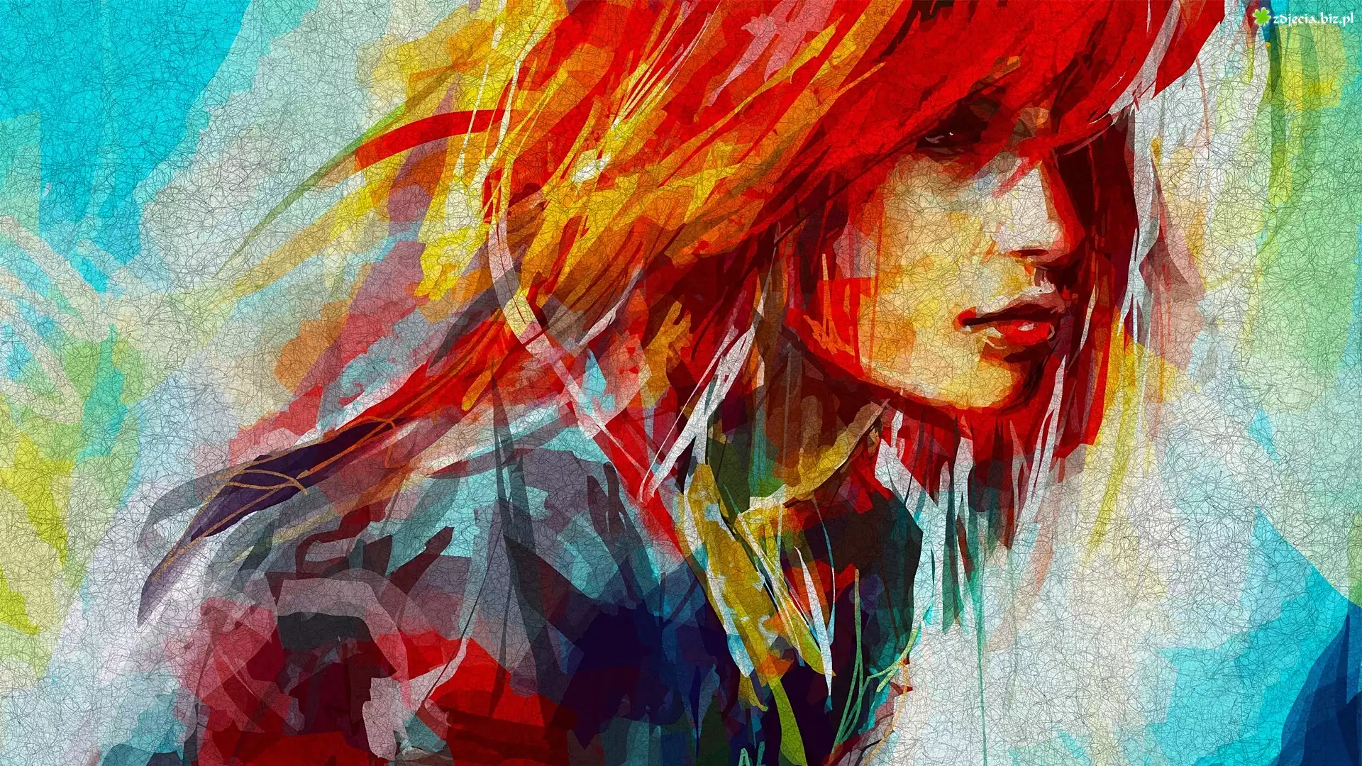 Zdjęcie Dziewczyna, Kolorowe, Włosy, Grafika