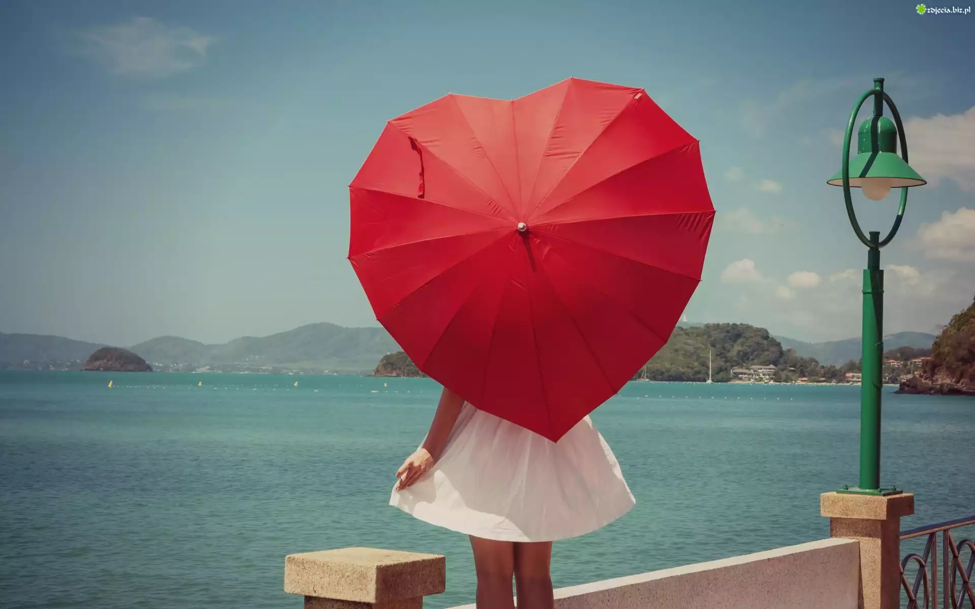 Zdjęcie Dziewczyna, Parasol, Jezioro, Góry
