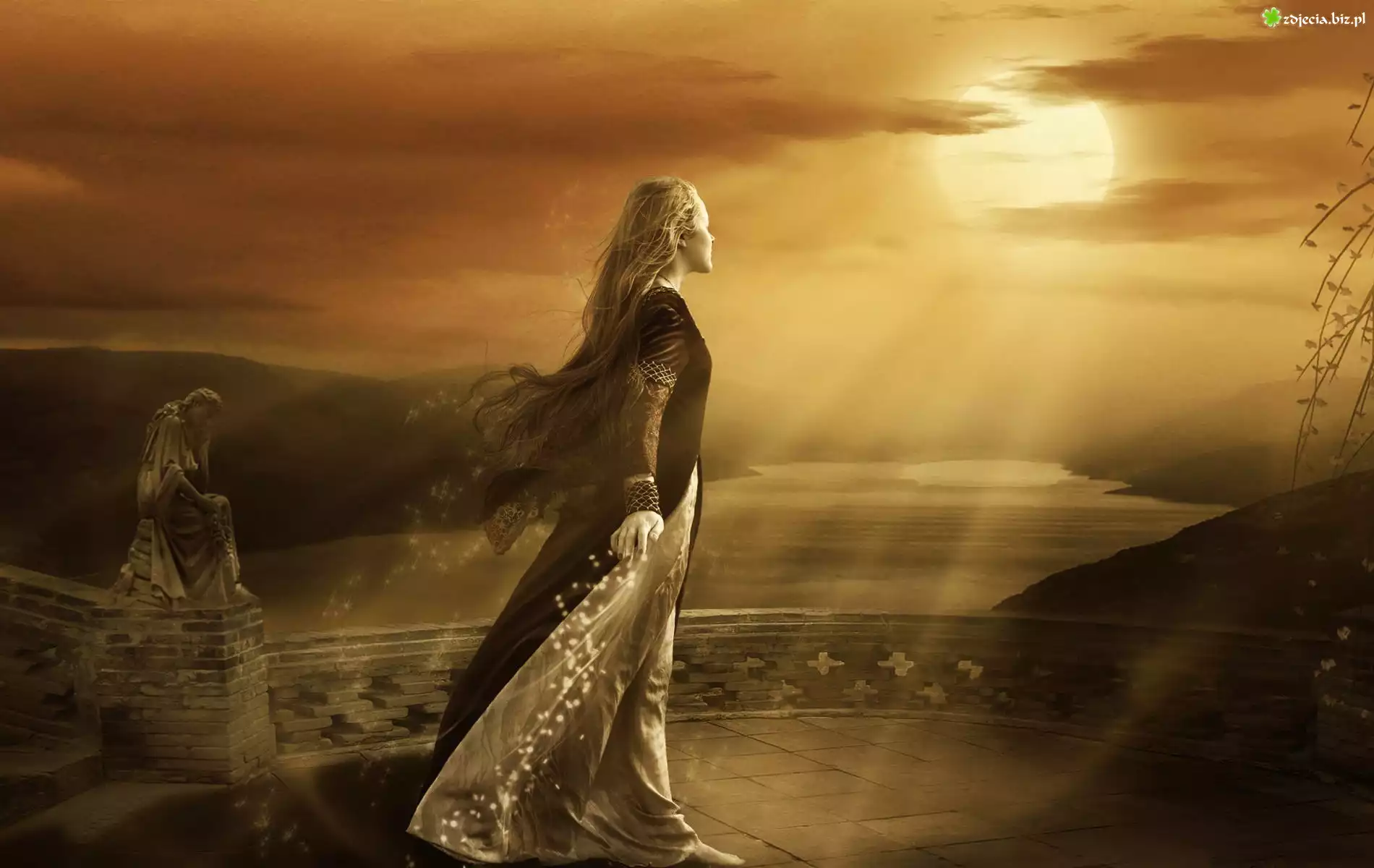 Zdjęcie Dziewczyna, Taras, Zachodzące, Słońce