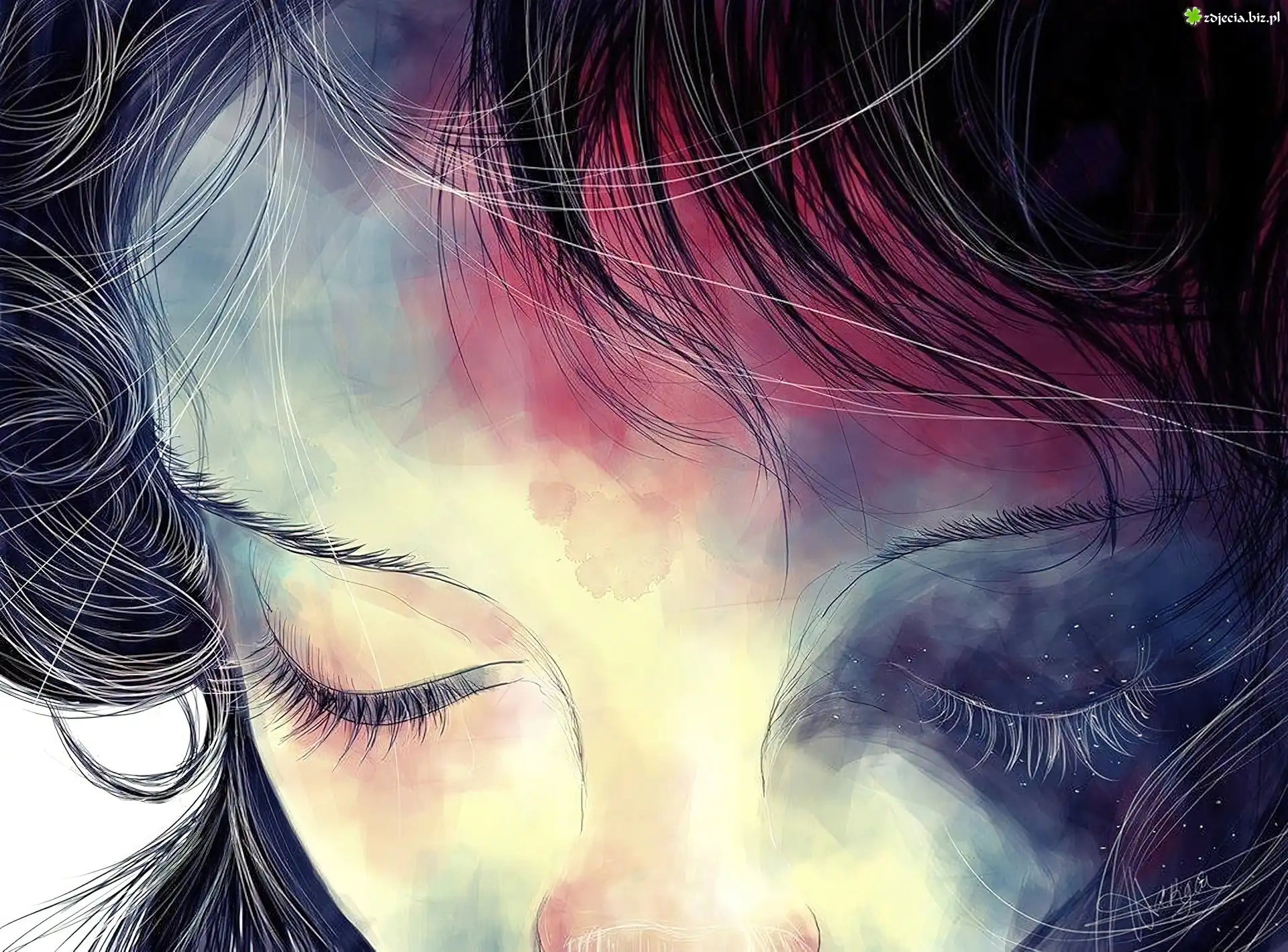 Zdjęcie, Zamyślona, Dziewczyna, Grafika
