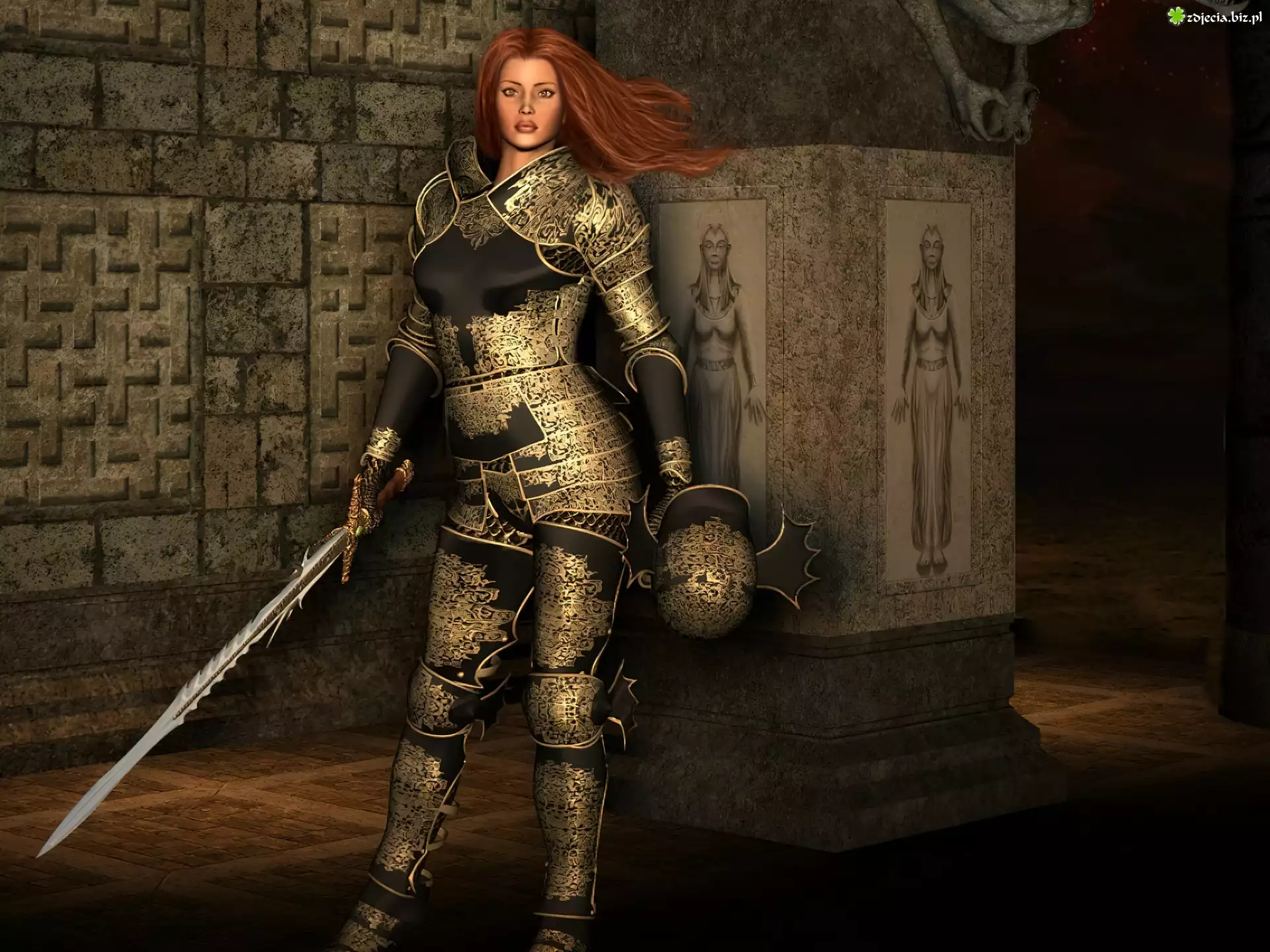 Zdjęcie Dziewczyna, Rycerz, Zbroja, Miecz
