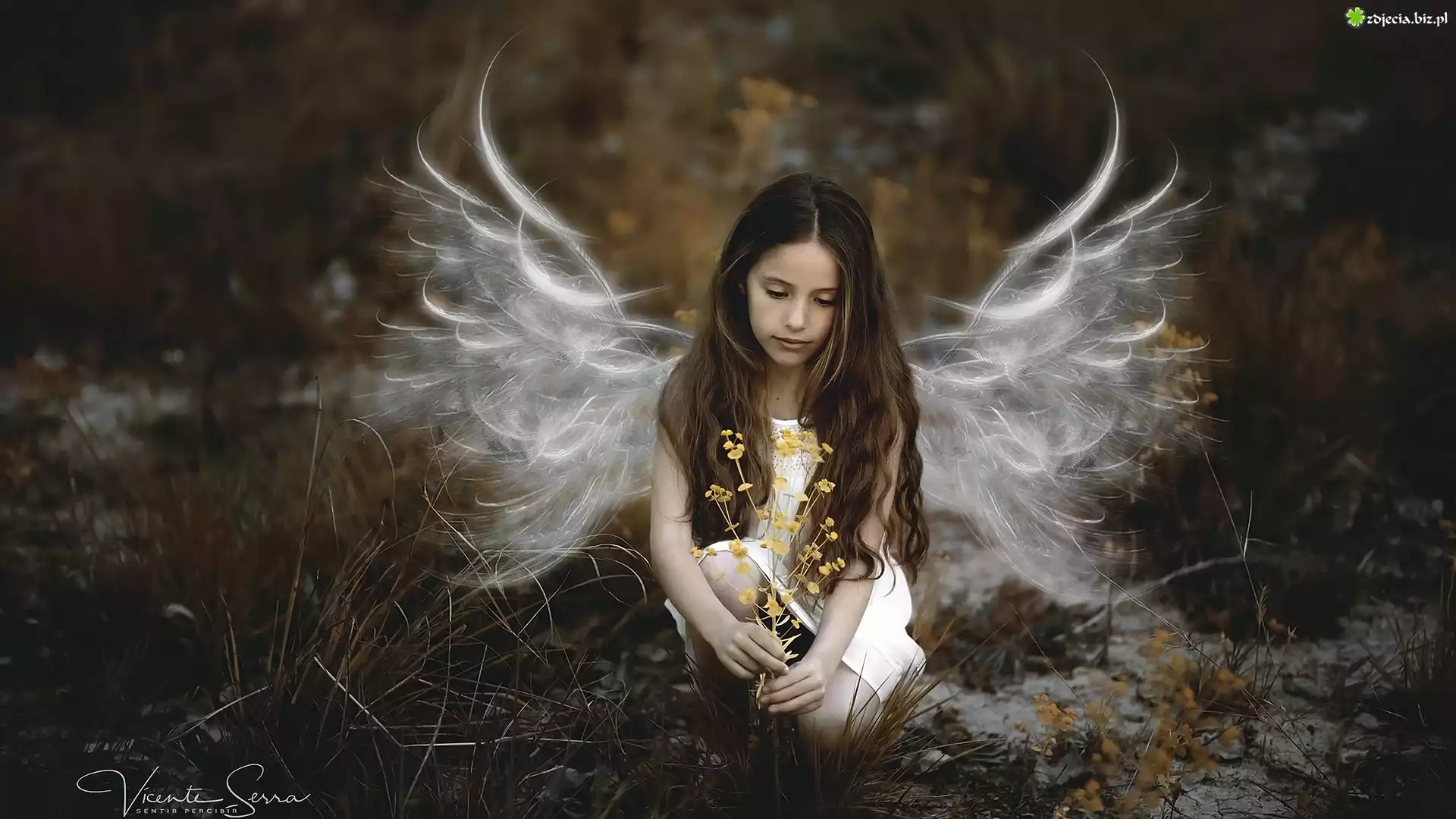 Zdjęcie Dziewczynka, Skrzydła, Anioł, Rośliny