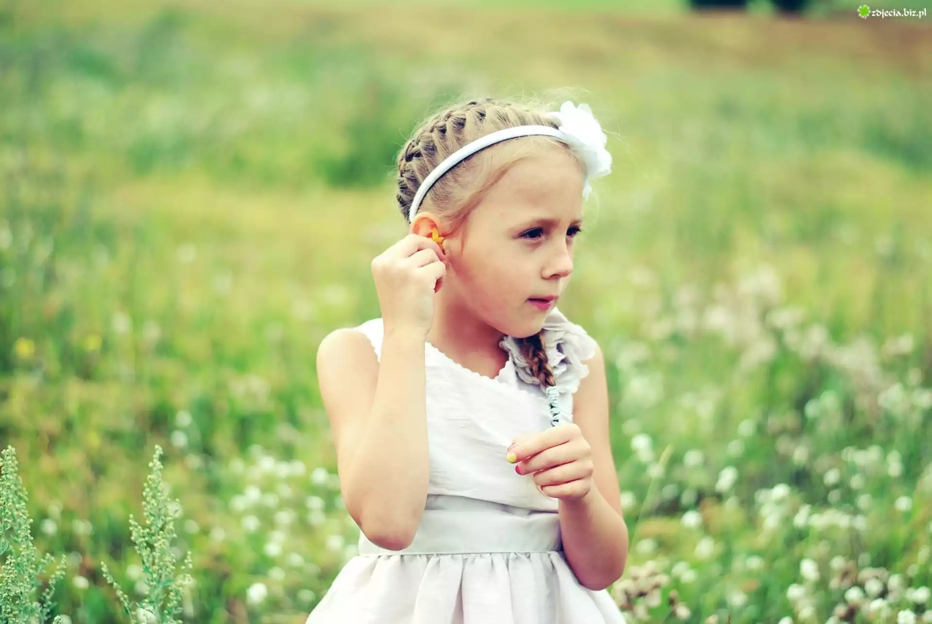 Zdjęcie, Dziewczynka, Blondynka, Biała, Sukienka