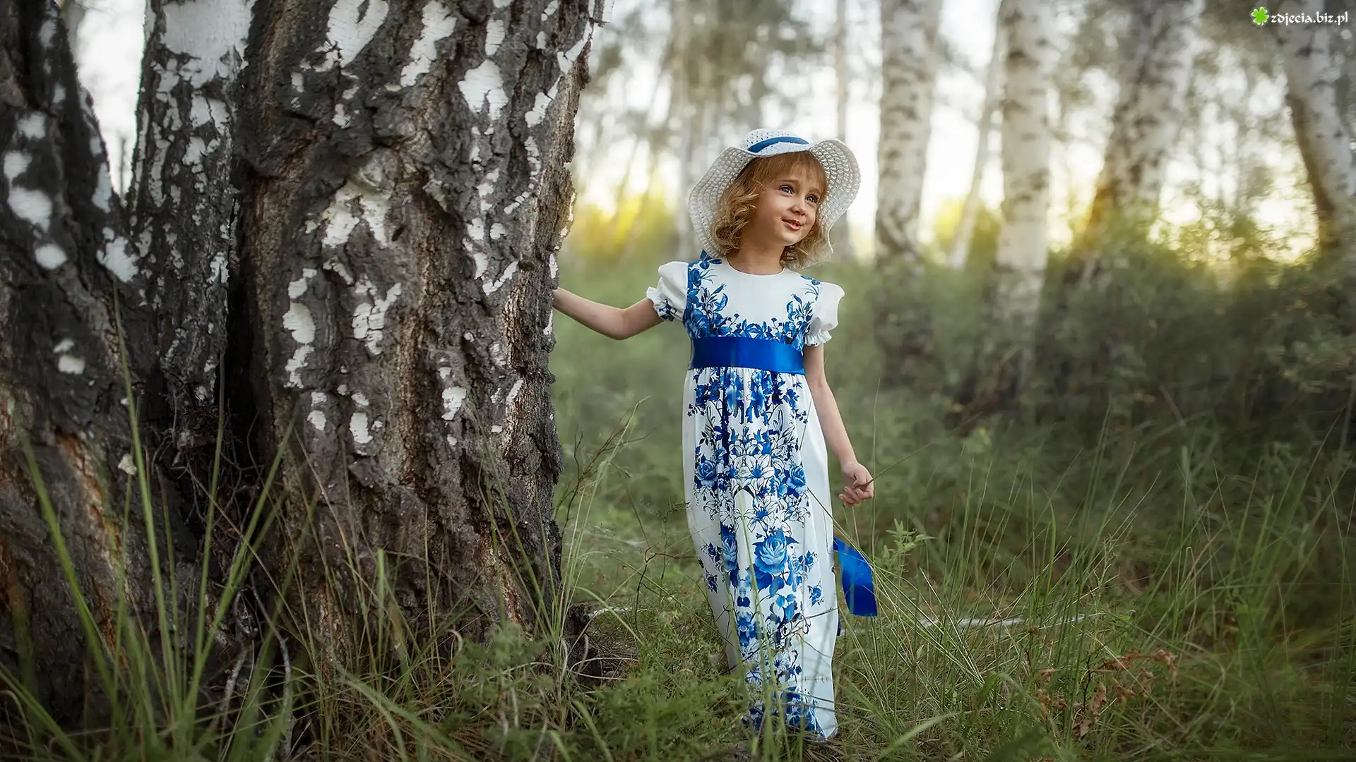 Zdjęcie Dziewczynka, Kapelusz, Drzewo, Brzoza