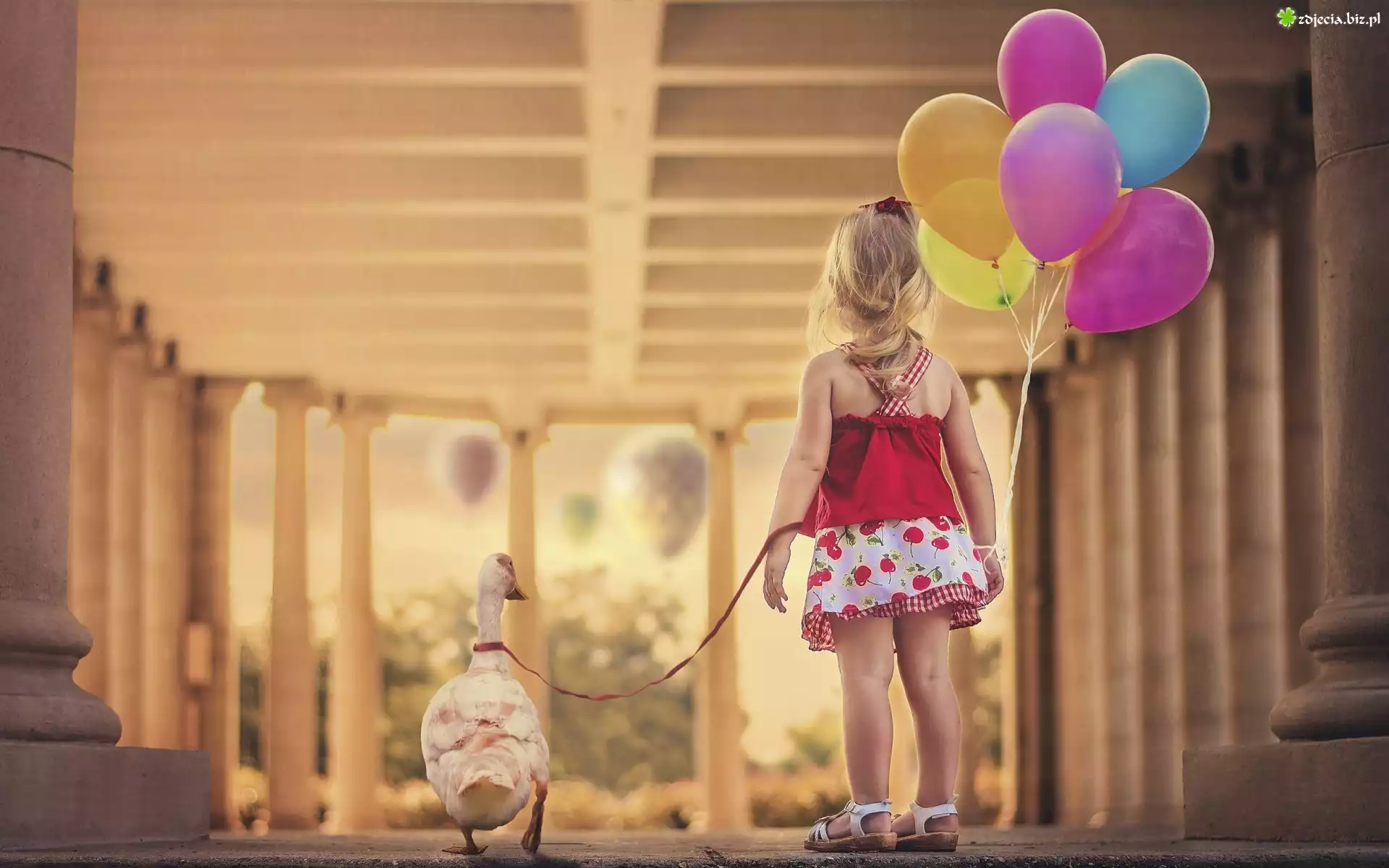 Zdjęcie Dziewczynka, Kolorowe, Baloniki, Gąska, Park