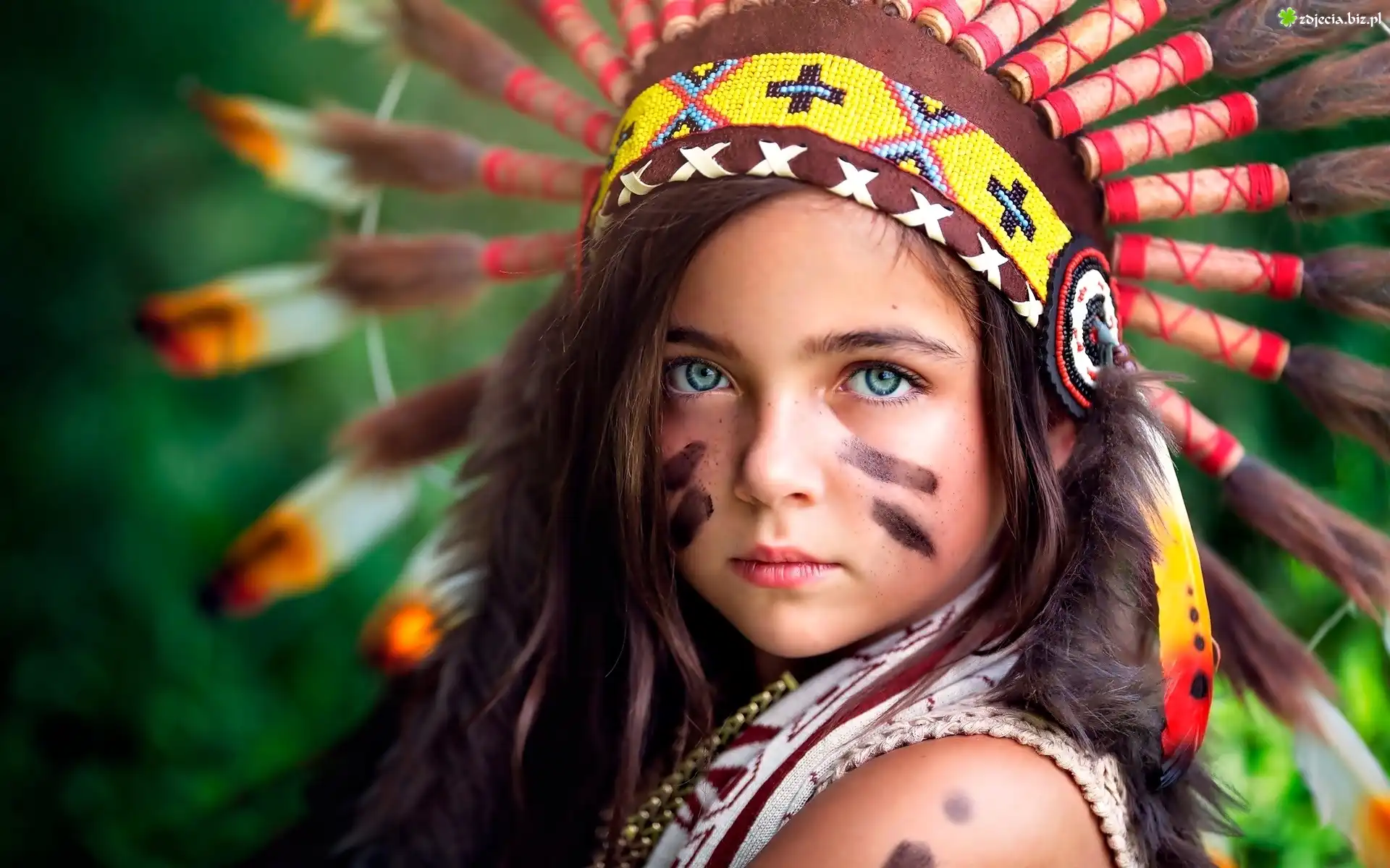 Zdjęcie Dziewczynka, Twarz, Indianka, Pióropusz