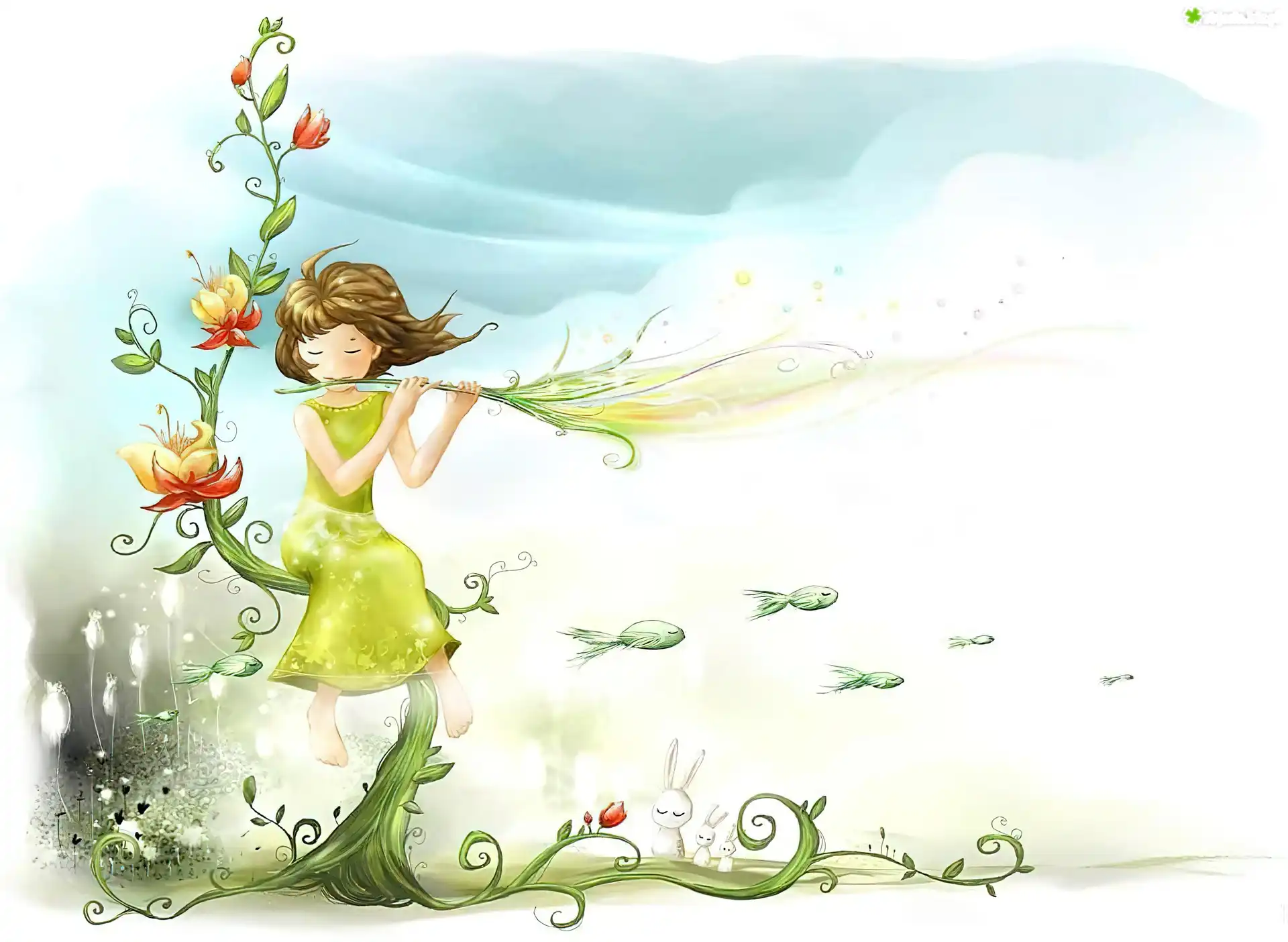 Zdjęcie Kwiaty, Dziewczynka, Flet