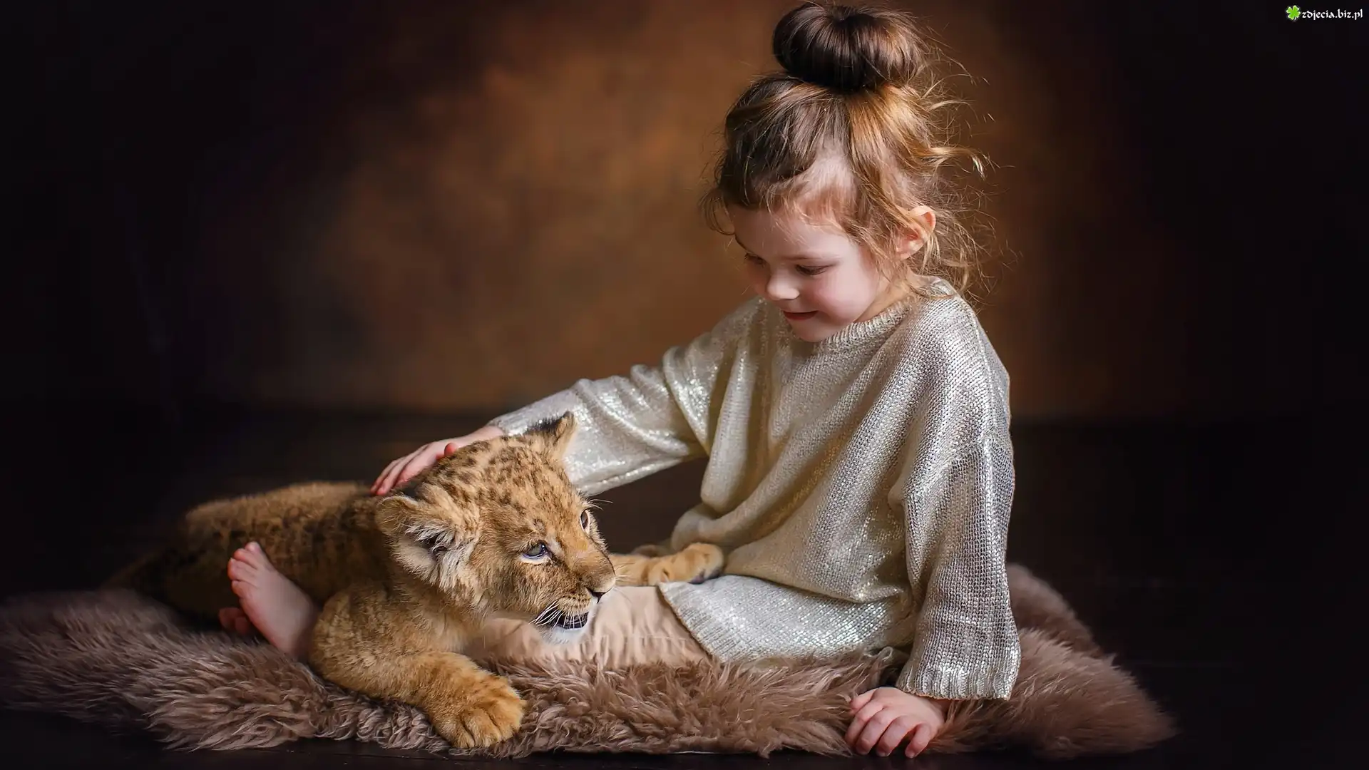 Zdjęcie Dziewczynka, Młody, Lew, Lwiątko