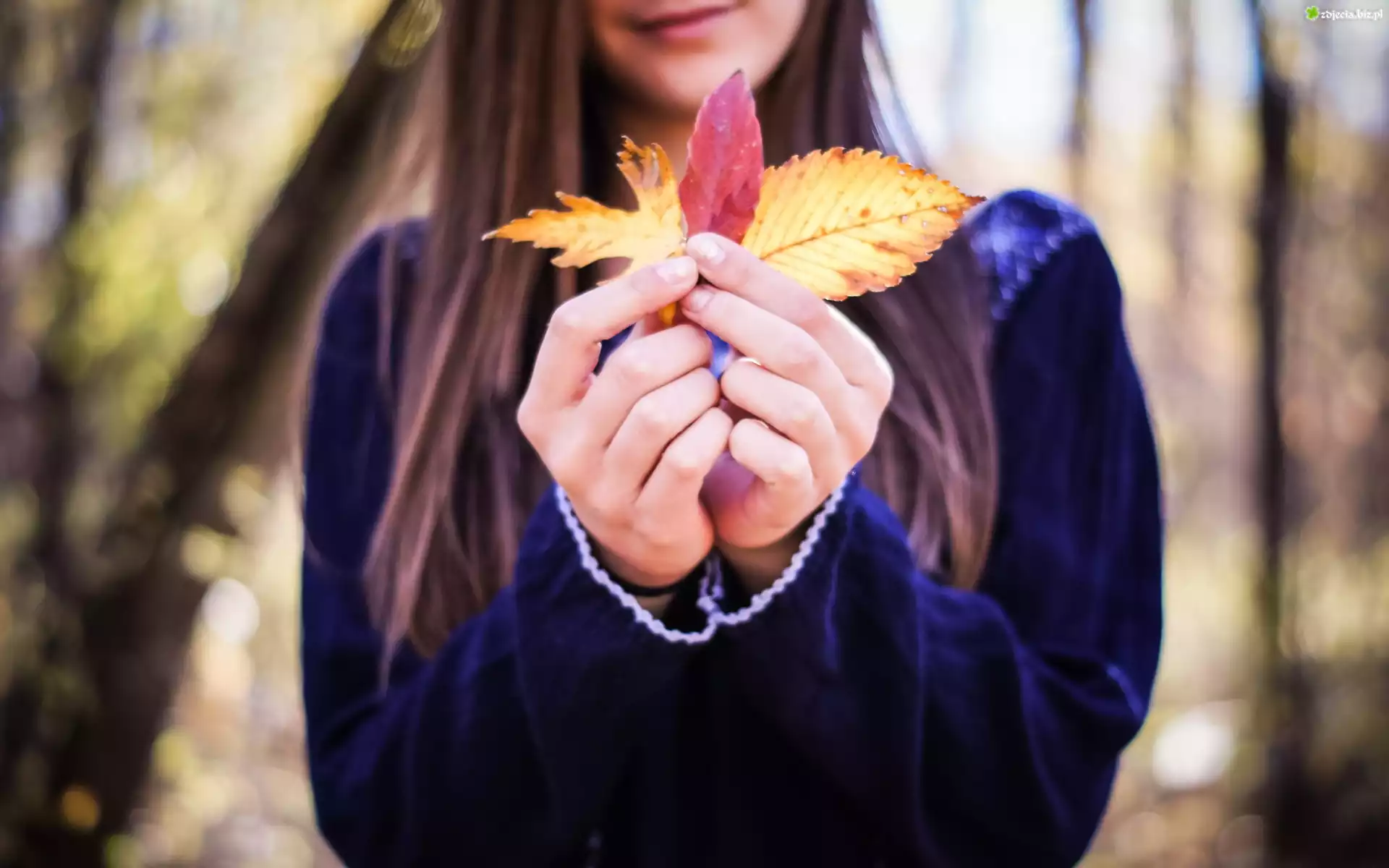 Zdjęcie Dziewczynka, Ręce, Liście, Jesień