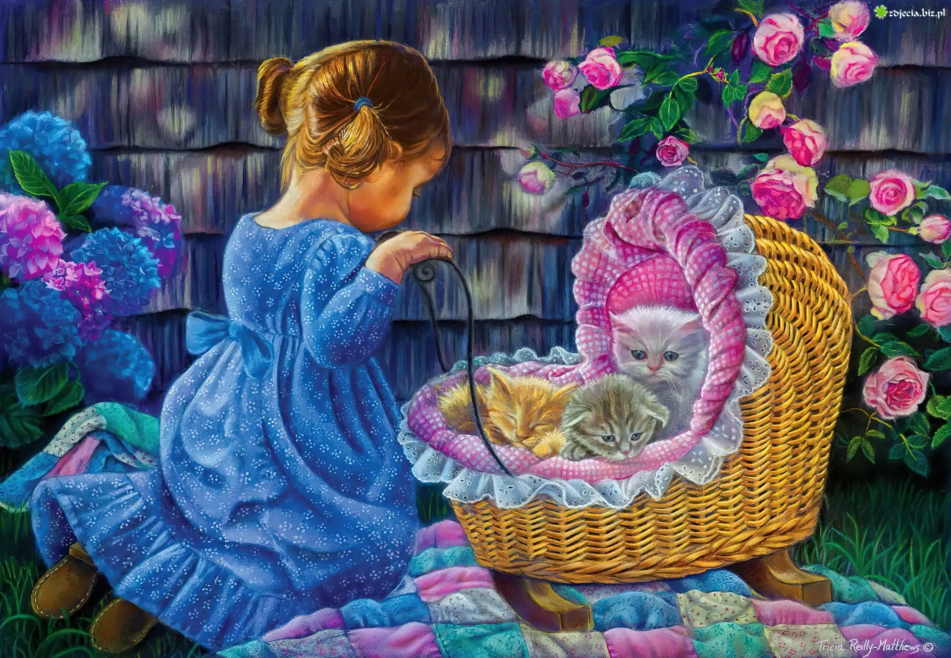Zdjęcie Dziewczynka, Wózek, Trzy, Małe, Kotki