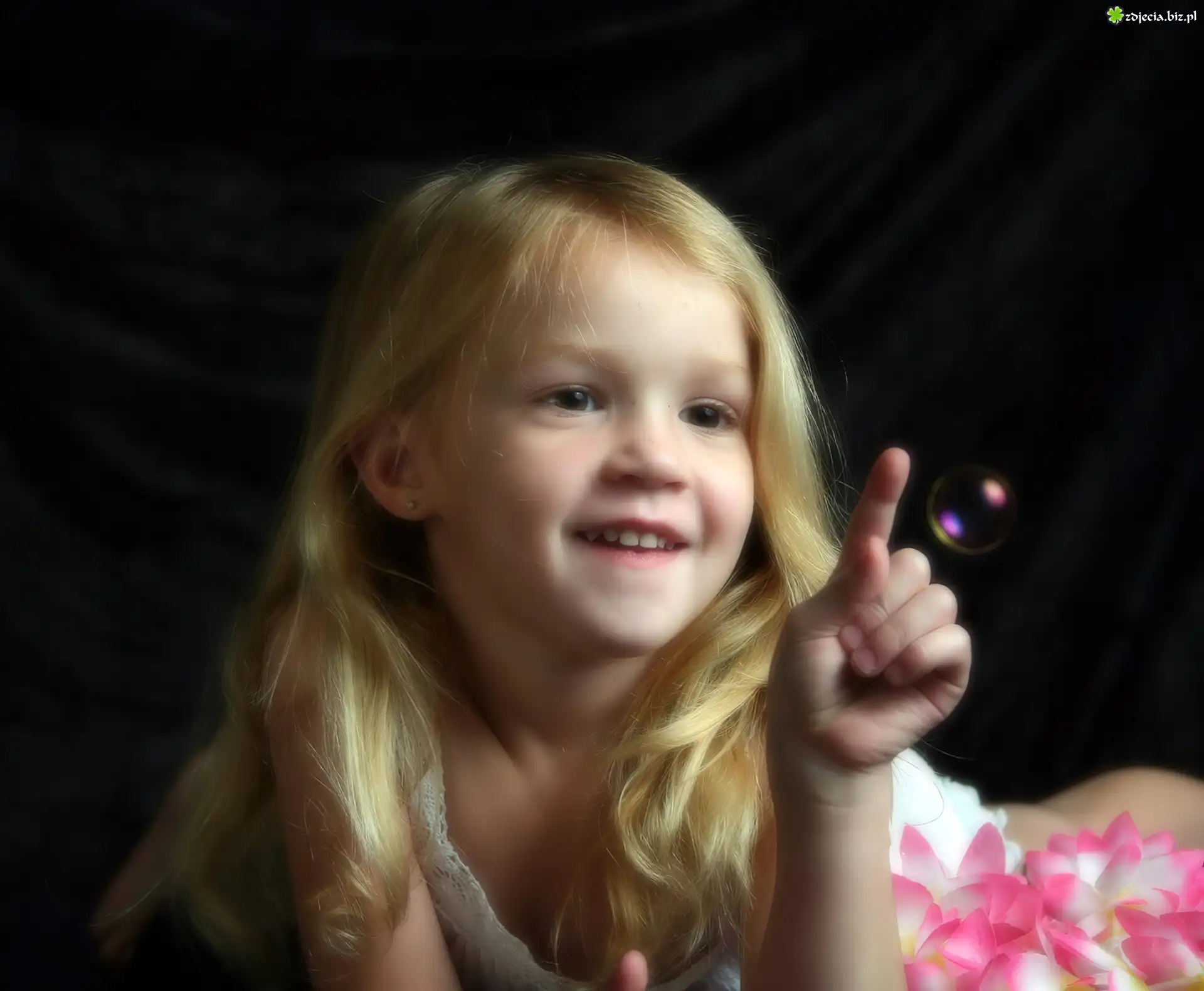 Zdjęcie Dziewczynka, Bańka, Mydlana, Uśmiech