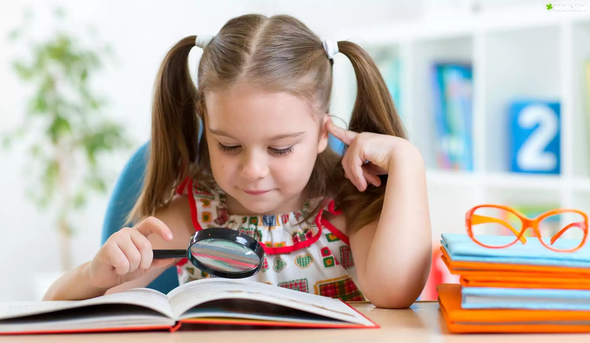 Zdjęcie Dziewczynka, Książki, Lupa, Okulary, Nauka