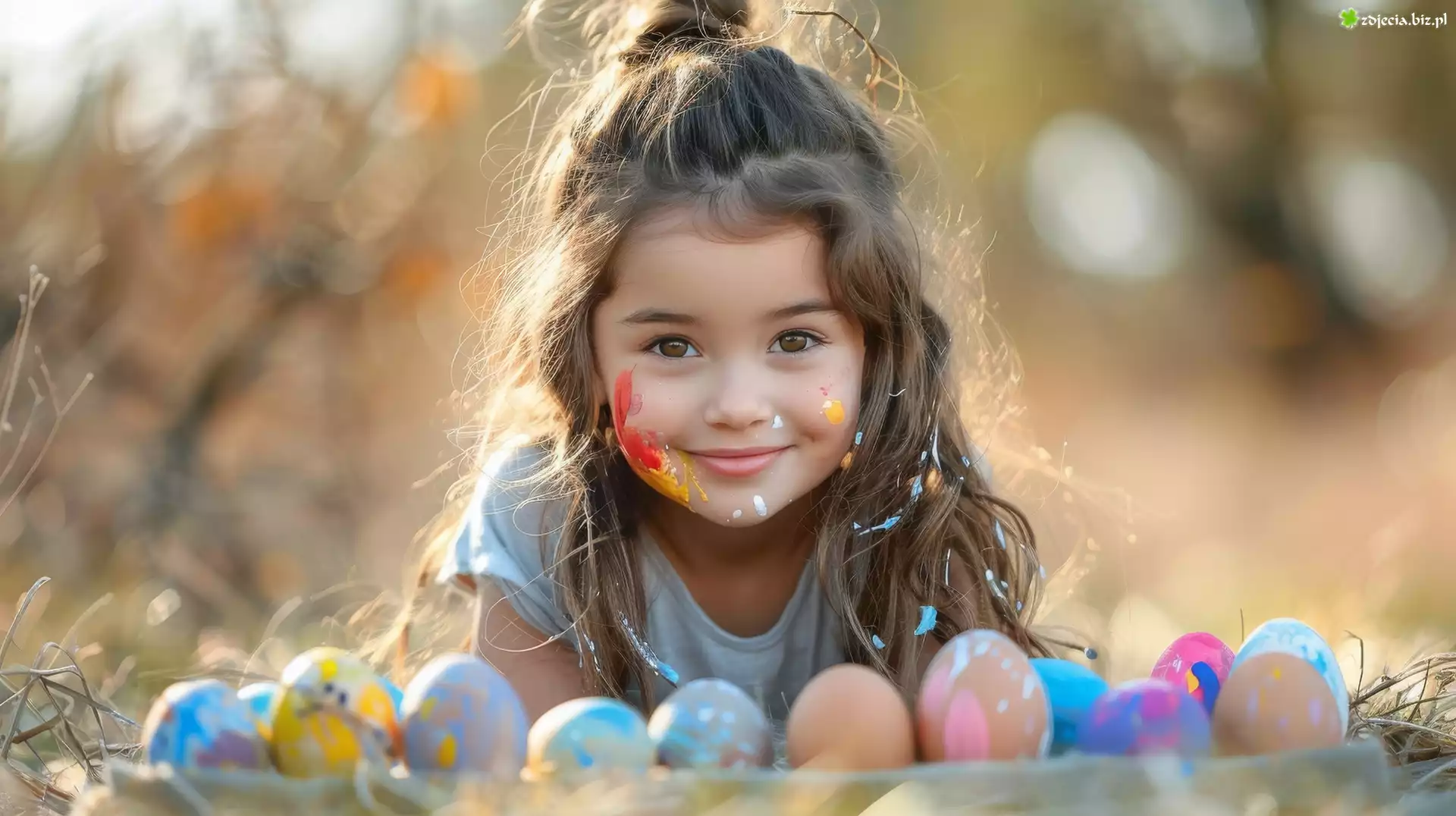 Zdjęcie Długowłosa, Dziewczynka, Pomalowana, Twarz, Jajka