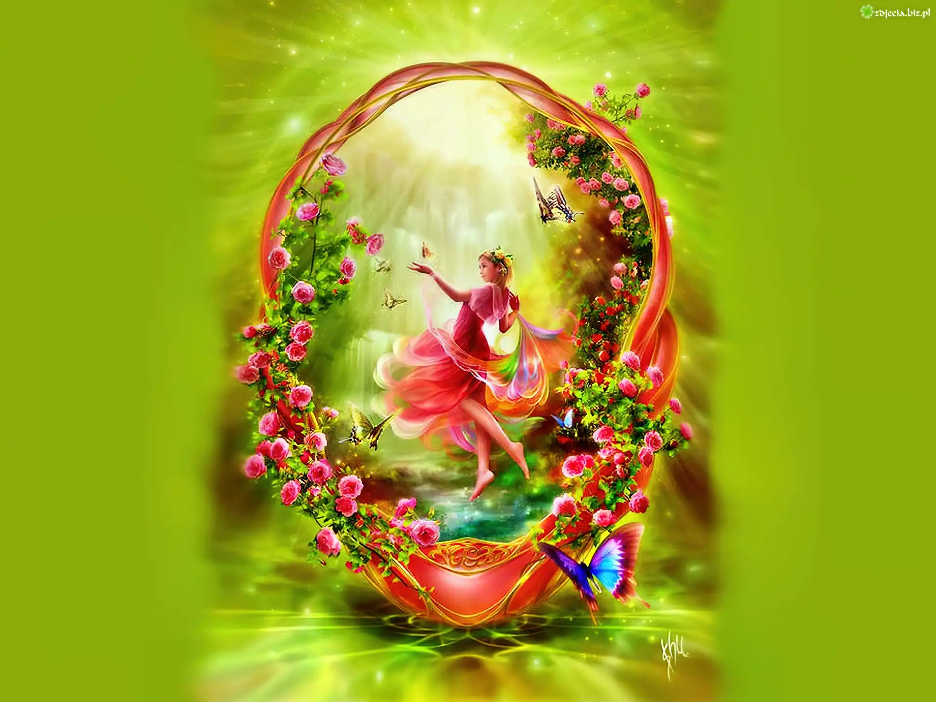 Zdjęcie Dziewczynka, Kwiaty, Promienie, Motylki